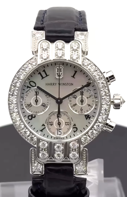 ケースにはK18WGが使用され、ベゼルには美しいダイヤモンドが配置されており、ハリー・ウィンストンならではのまばゆい輝きを放っています✨