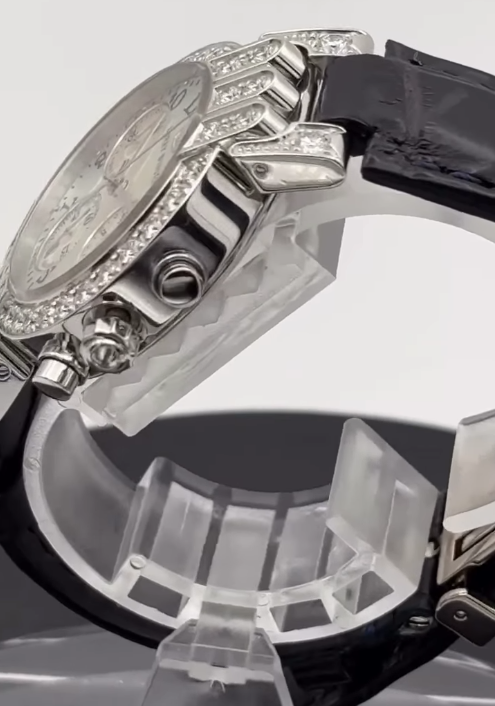 クロノグラフ(ストップウォッチ)機能と、女性の腕に馴染みやすいケース径約32mmという程よいサイズ感が、ラグジュアリーでありながら普段使いもしやすい一本として、大人の女性に愛されています!