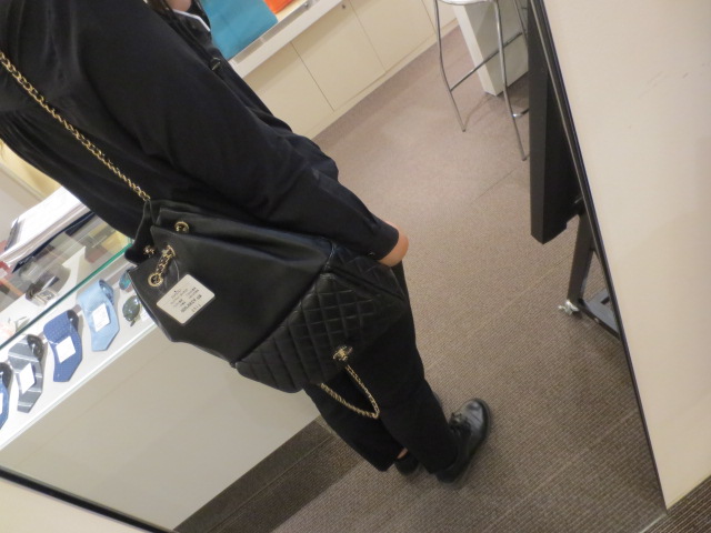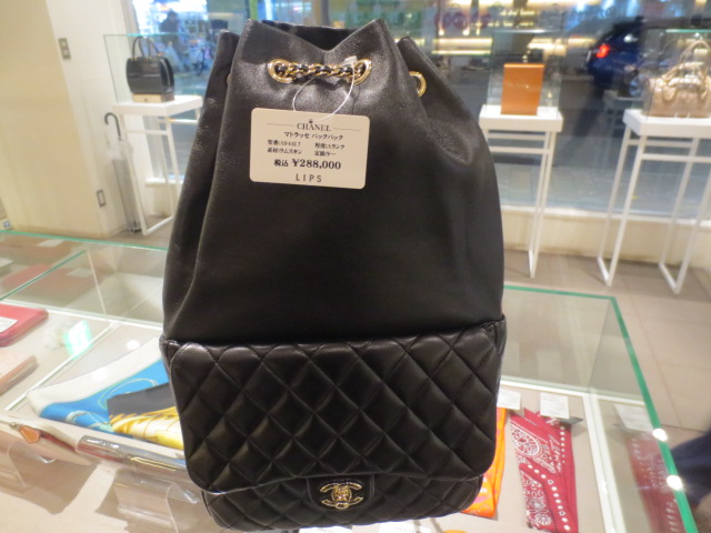 ボトム周りはマトラッセのバッグをそのままデザインしたもので、フロントにはCCマークの付いたポケット、背面にもスリット型のポケットも。トップはバックパックとしてはお決まりの巾着型に絞る事ができ、チェーンストラップとも連動する仕様になっています。