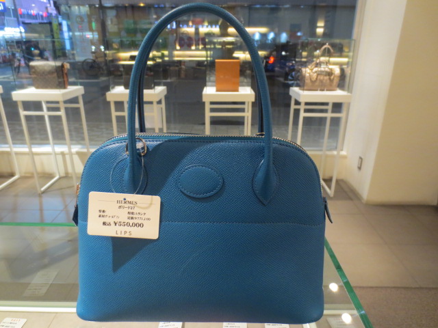 □R刻印(2014年製)。どんな時代にも愛されるエレガントなボリード。無駄のない端正なデザインと機能性を兼ね備えています。27センチサイズは女性らしく上品に持て、使い勝手が良いと人気が高く、プライベートでもビジネスでも活躍します。