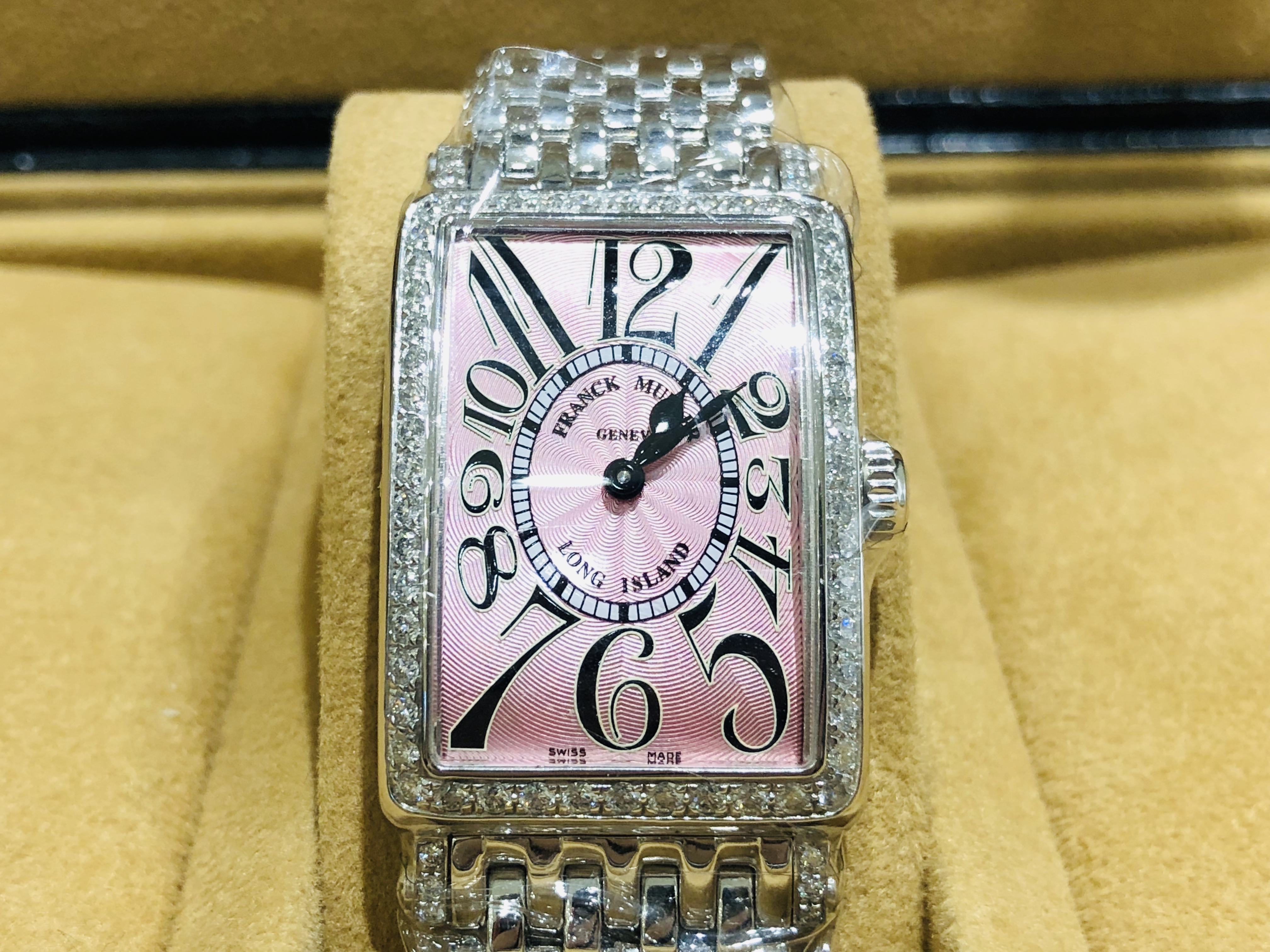 フランクミュラーの中でも特に人気のある「ロングアイランド」。こちらはケース、ラグにダイヤ
