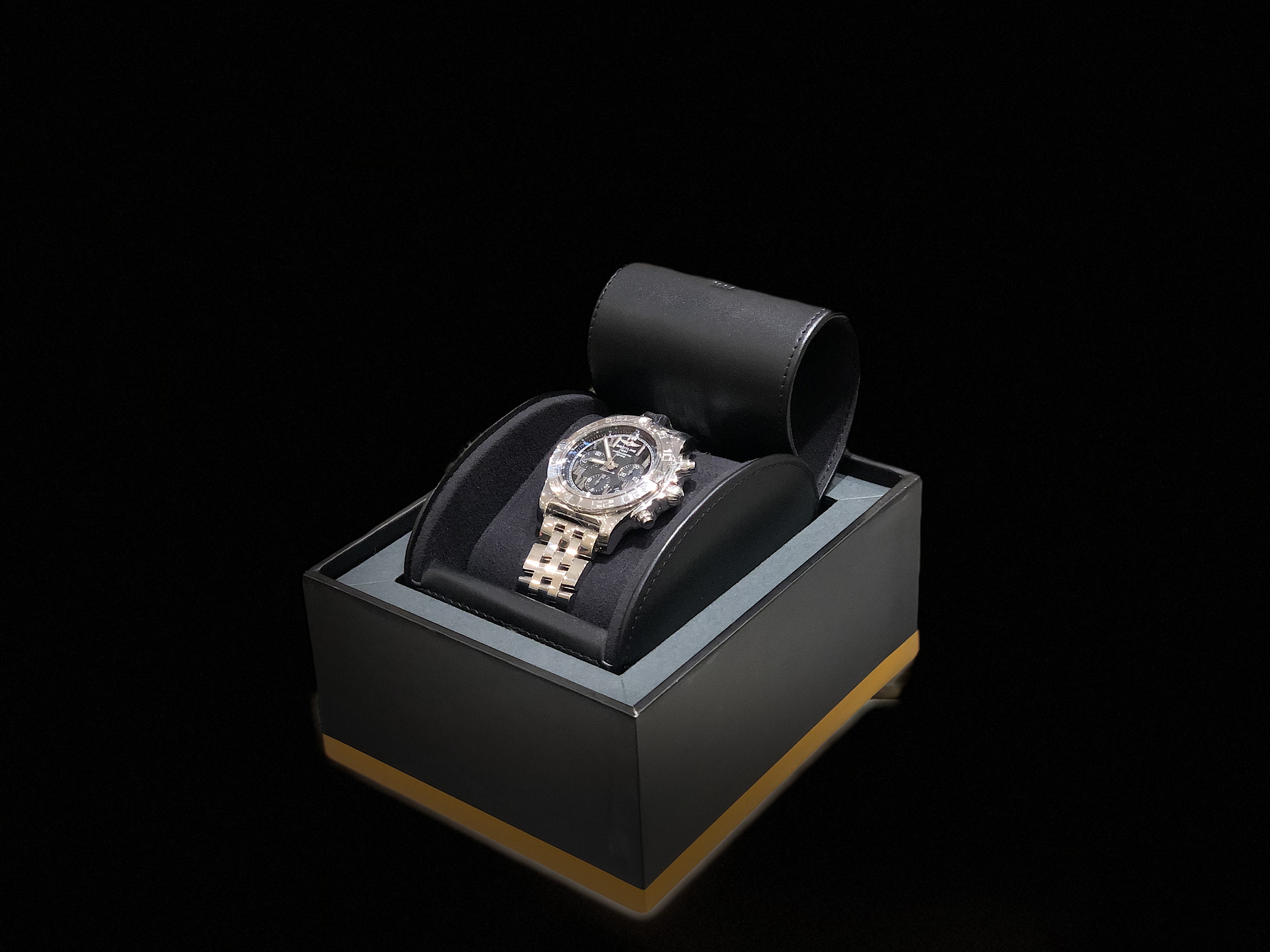 こちらはケースが44cmで、ローマ数字のインデックスにクロノグラフと日付も納まっていて、見た目も機能性もバッチリです!