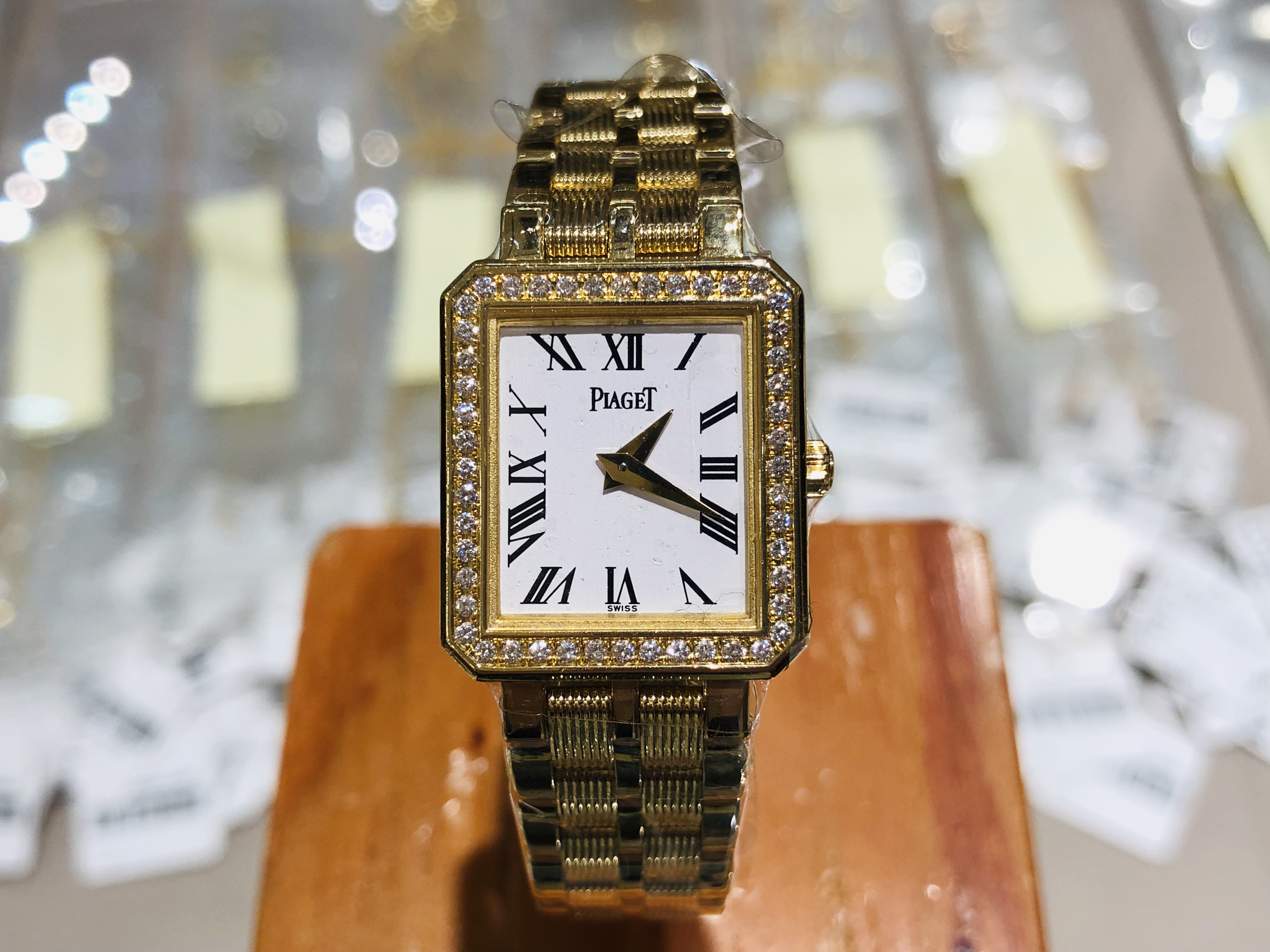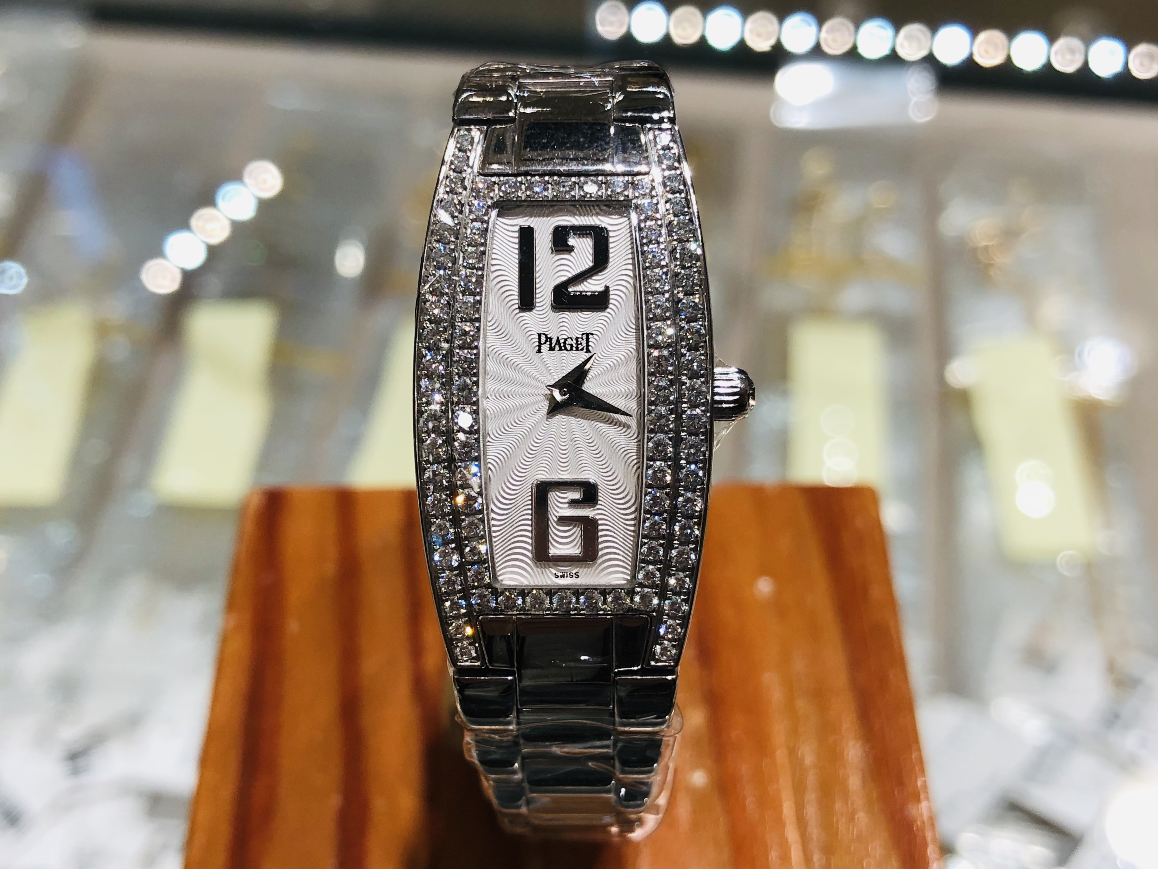ピアジェのケースからブレスレットにかけて一体のデザインで、重厚な作りは使う人を満足させます。ホワイトシェル文字盤とゴールドの輝きがワンランク上のラグジュアリー感をお楽しみになれます。