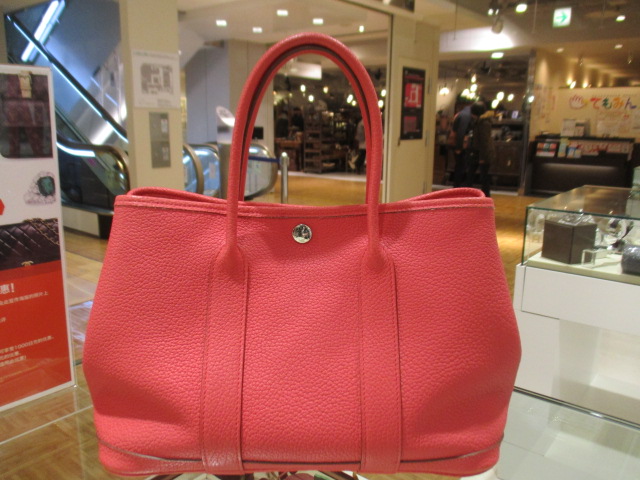 P刻印。2012年製。エルメスから定番人気の「ガーデンパーティPM」。様々なコーディネートに取り入れやすいデザインで通勤・通学・デイリーユースなどシーンを問わずご使用頂けます。