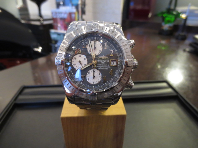 こちらは現行品のクロノマットです。洗練されたデザインですごい高級感とブライトリングならではの力強いデザインですね!