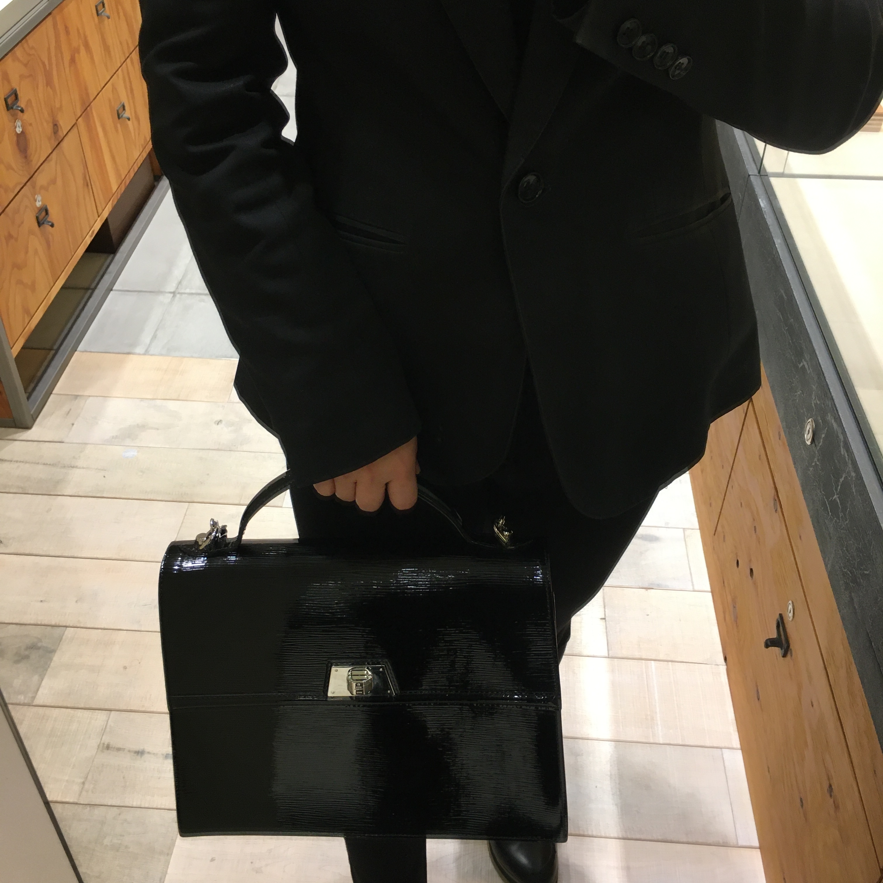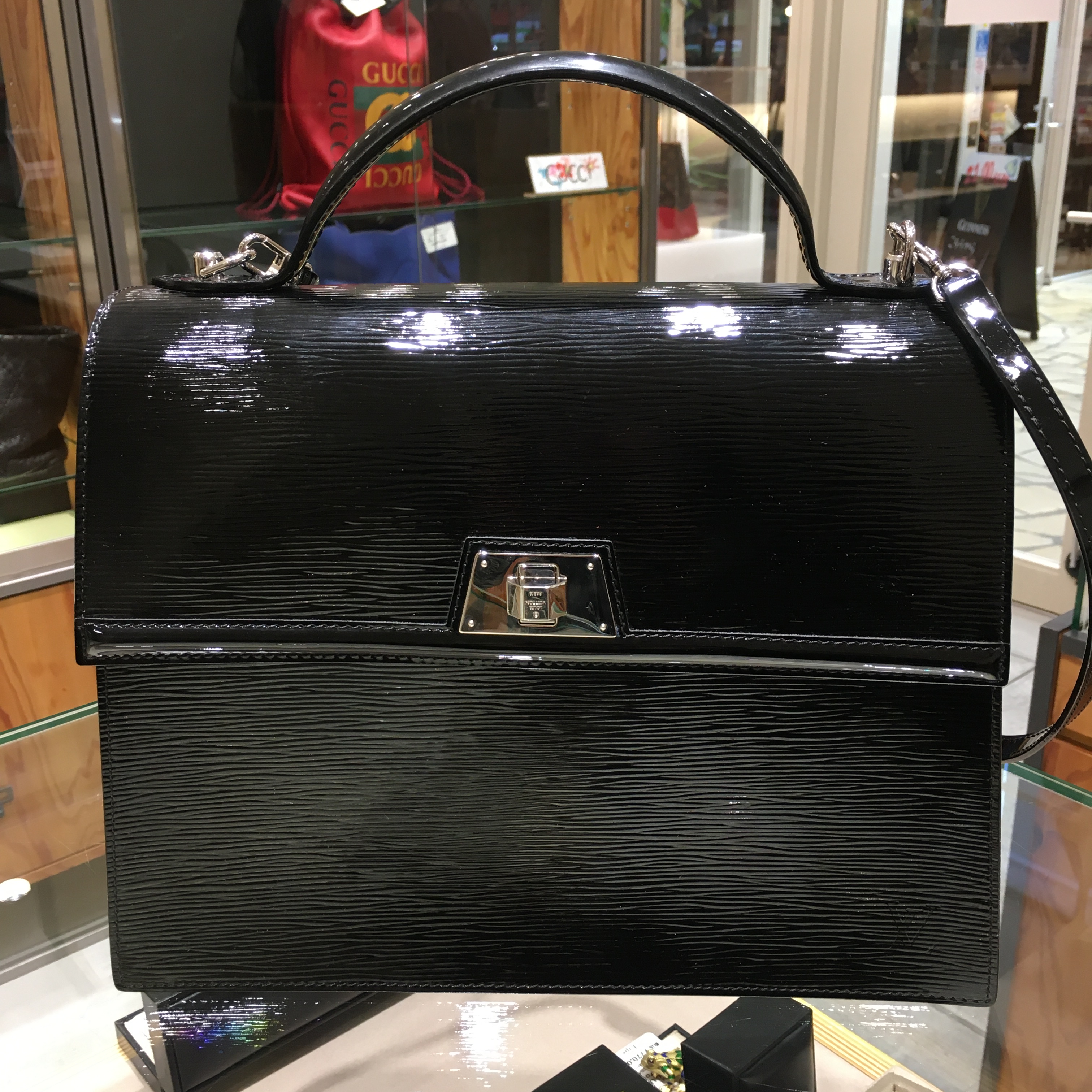 光沢感のあるエピエレクトリック素材のハンドバッグです。