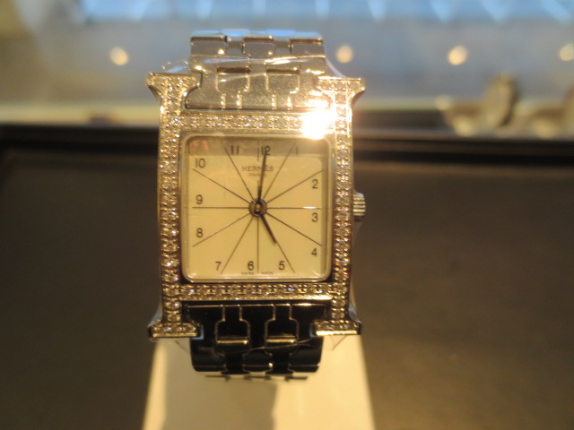 一目でエルメスとわかる「H」のアルファベットをケースにあしらったデザインです。ベゼルの「H」部分にダイヤモンドを使い、高級感漂う一品となっています。