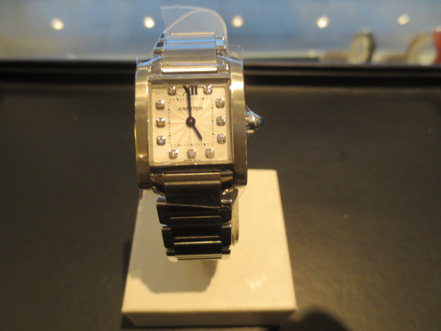 カルティエの言わずと知れた人気シリーズ「タンクフランセーズ」。シンプルでオーソドックなデザインとスタイルを選ばず着けられる気軽さが人気です。文字盤には11Pのダイヤモンドが施された高級感溢れる1本です。