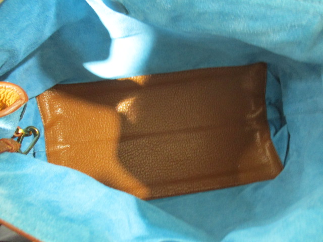~USED品。丈夫で内容量も多いので使い勝手抜群。表面と内部でバイカラーになっており、明るいブルーがお洋服の差し色にピッタリです!~
