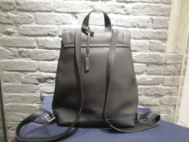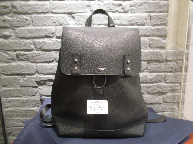 USED品。フロントフラップにサンローラン ロゴを型押しした、しなやかな構造のバックパック。シンプルなデザインと、どんなコーディネートにも合わせやすいブラックがおすすめの一品です。