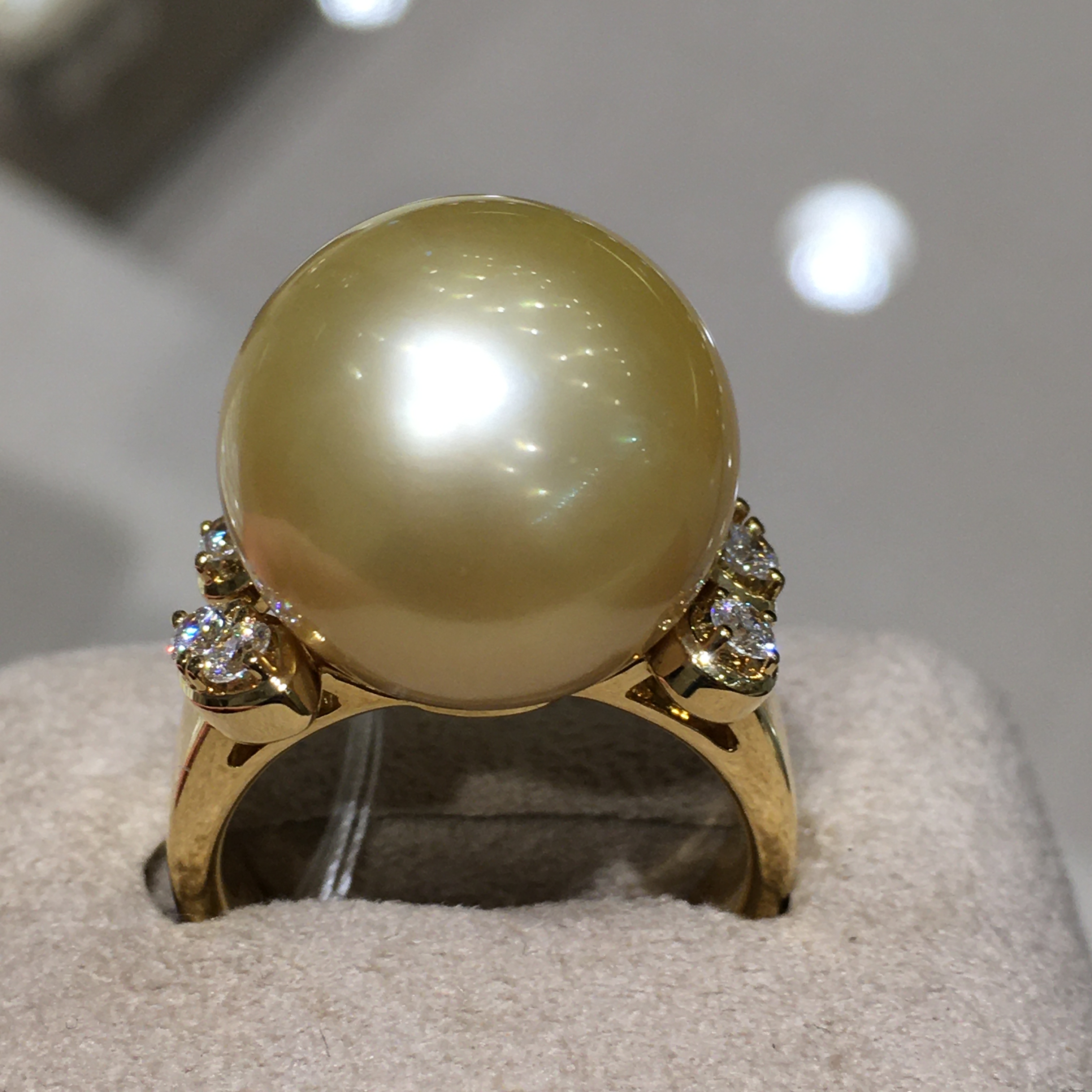 K18イエローゴールドを使用した、ゴールデンパールリングです。