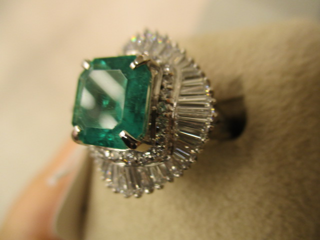 USED品。プラチナ製。5月の誕生石で、和名は「翠玉」。幸運・幸福の意味があり、愛の石とも言われることから、恋人や夫婦にプレゼントとして人気の高いエメラルドです。