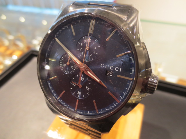 幅広い年齢層に人気の高い「グッチ」のメンズウォッチ。お手頃な価格帯ながら、シンプルで使いやすいデザインがオススメの1本。126.2。
