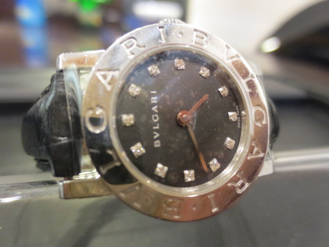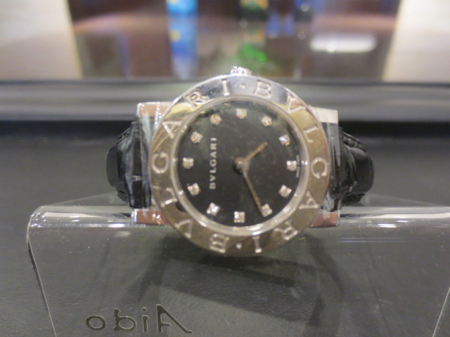 ブルガリを代表する人気シリーズ「ブルガリブルガリ」。ベゼルを囲むように刻まれたブランドロゴとシンプルで上品なデザインが人気です。12Pダイヤ付。BB23SL。