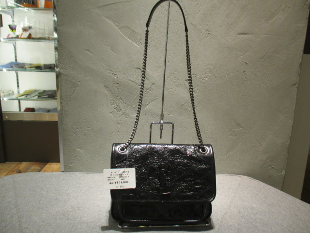 USED品。サンローランのチェーンショルダーバッグです。Wチェーンですので斜め掛けショルダーや肩掛けショルダーとしてお楽しみ頂けます