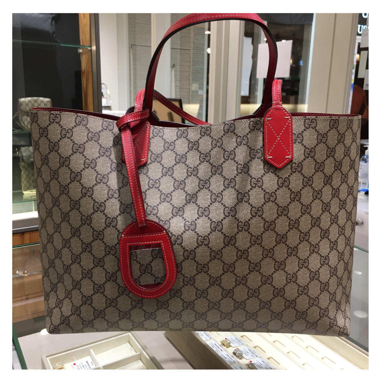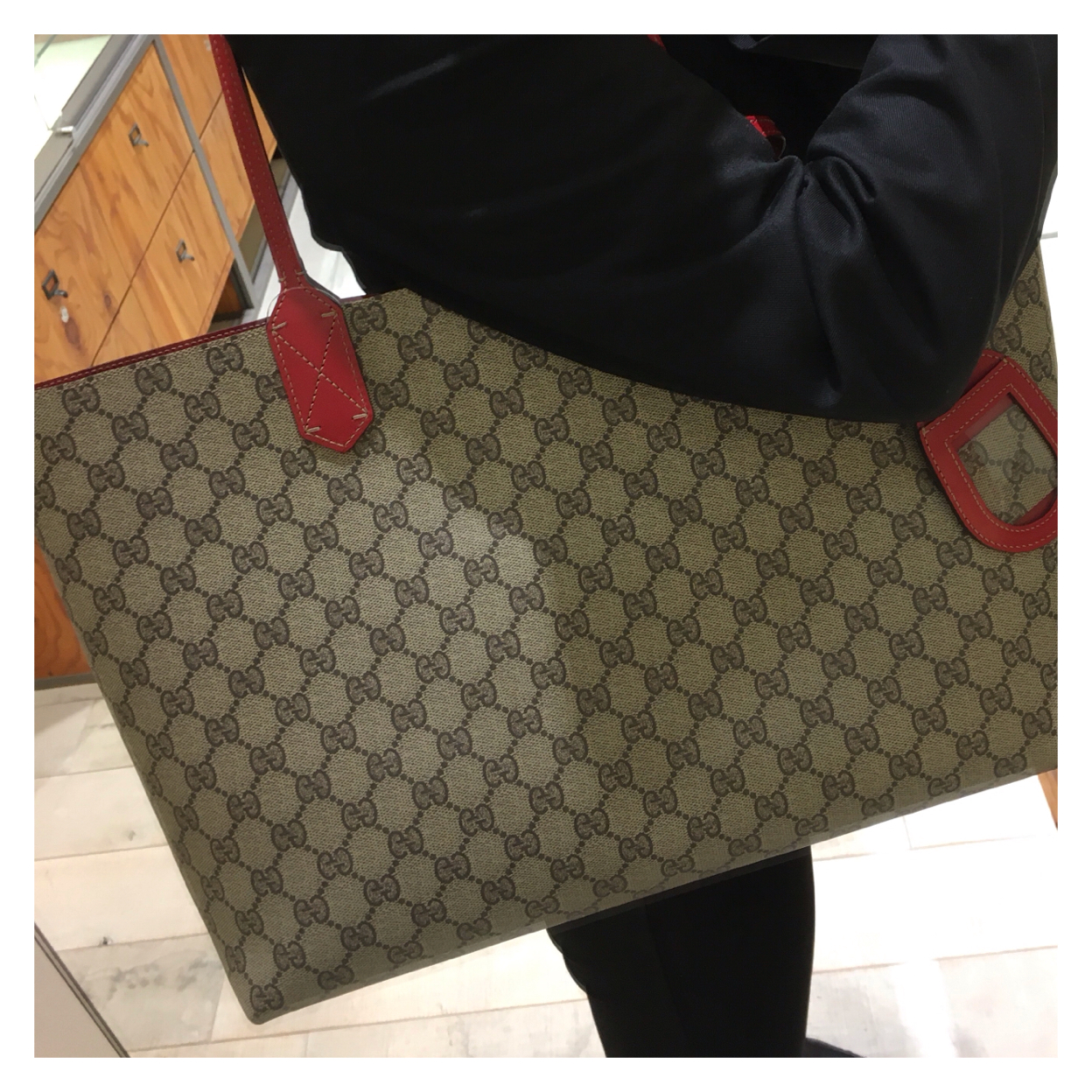 グッチのリバーシブルトートバッグ。通勤通学に便利なサイズです。