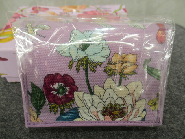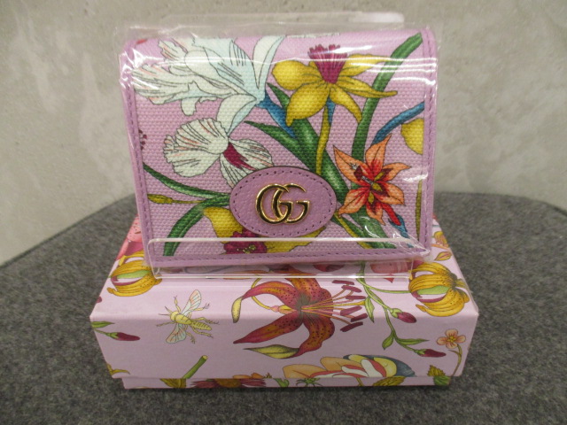 こちらは新品です。日本限定で発売されたフローラコレクションのウォレットです。四季折々の花々を束ねた9つのブーケやベリー、蝶、トンボ、昆虫たちが織りなす詩的でカラフルなイラストで、長年にわたりグッチを代表するモチーフとして親しまれています。