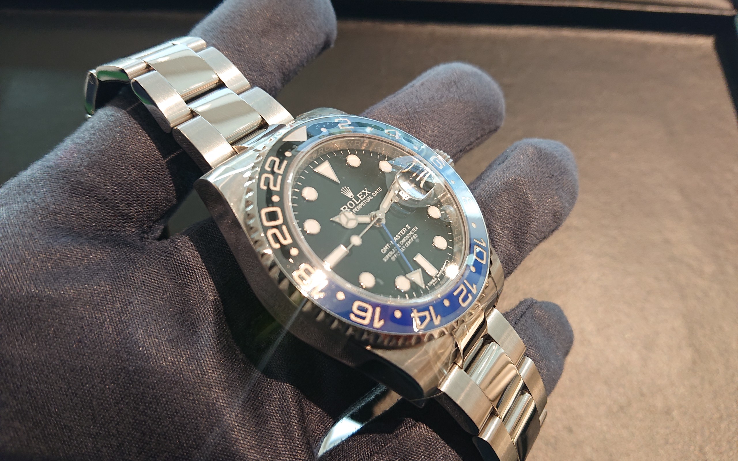 通称バッドマン。2019年に製造終了となりましたが、プロフェッショナルモデルらしいオイスターブレスが採用されていたモデルなので人気は健在です。保証書もついております!
