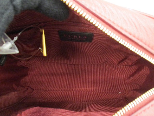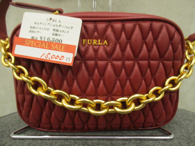USED品。キルティング加工のレザーを使用した、フルラのショルダーバッグです。くしゅくしゅのフォルムががオシャレ感をグッと引き立てます。