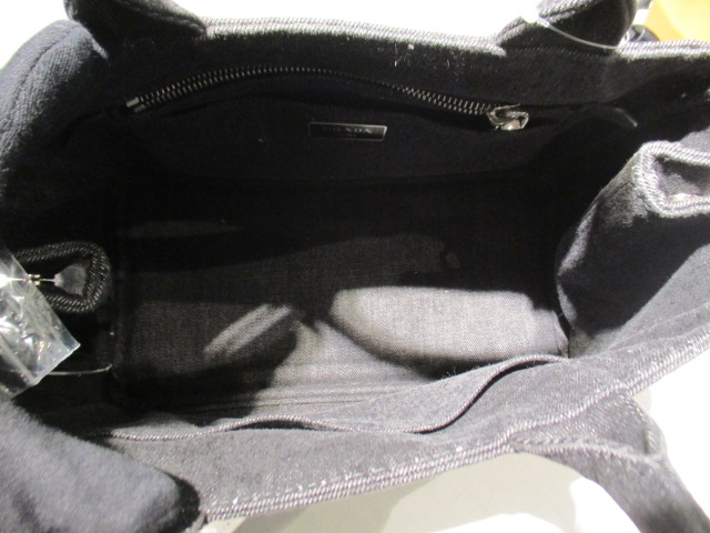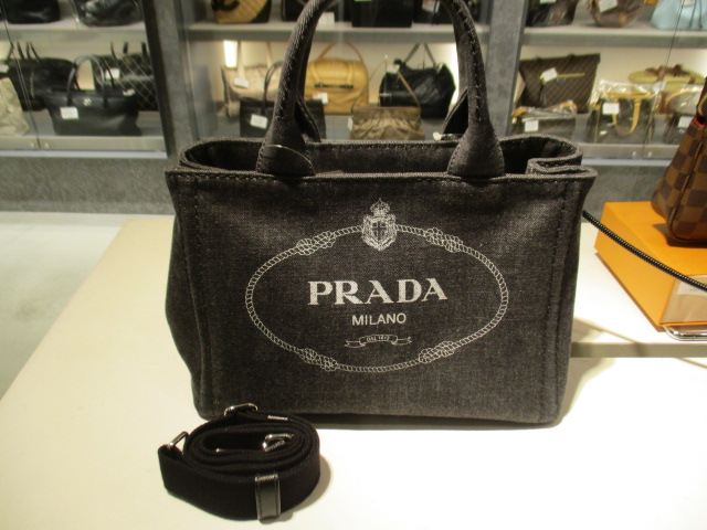 USED品。シンプルナチュラルなデザインが魅力のプラダのカナパトート。現在も絶大な人気を誇っています。正面に大きなロゴがデザインされていてブランド主張をしています。