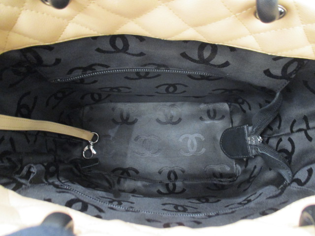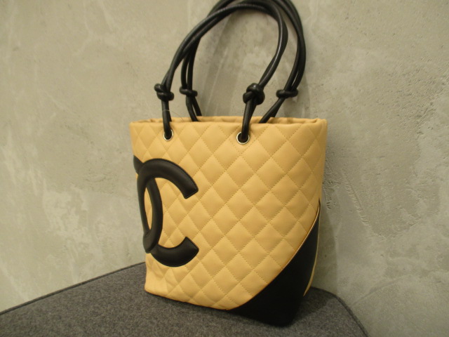 USED品。バイカラーが可愛らしい印象のデザイン『カンボンライン』のトートバッグ。デイリーユースにピッタリのミディアムサイズです。存在感抜群ですのでファッションのポイントとしてご使用いただけます。