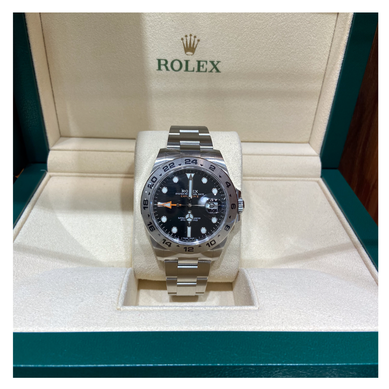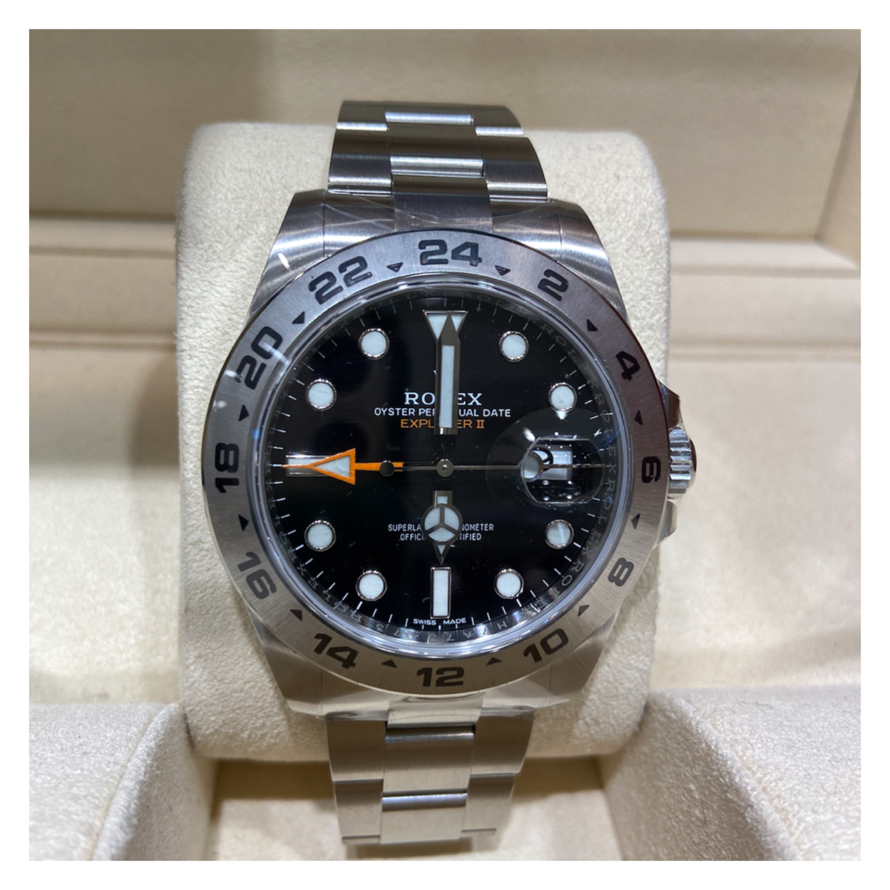 2011年にバーゼルで発表された新型「エクスプローラー2」。ケースサイズは42ミリにアップされ初代エクスプローラー2を思わせる24時間オレンジ針が特徴的な1本。