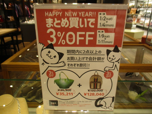 本日から、1月11日迄、まとめ売り割引第2弾を実施中です!