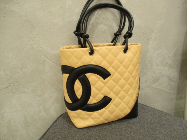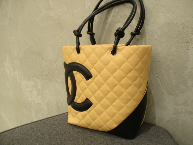 USED品。バイカラーが可愛らしい印象のデザイン『カンボンライン』のトートバッグ。デイリーユースにピッタリのミディアムサイズです。存在感抜群ですのでファッションのポイントとしてご使用いただけます。