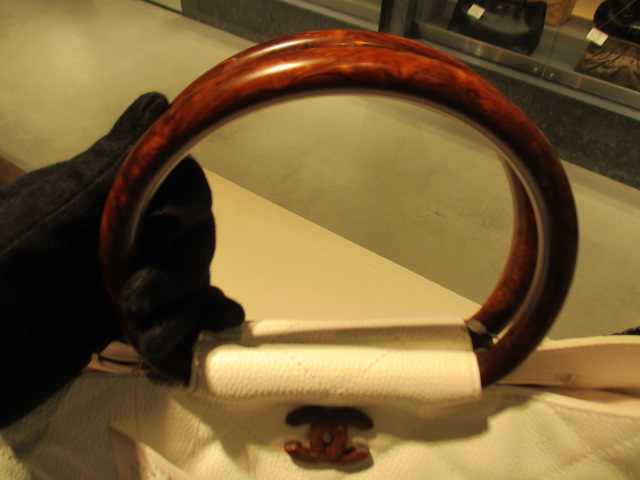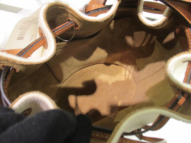 USED品。シンプルなデザインのバッグ。ハンドル部分が木目になっておりとてもオシャレです。内ポケットが2つあります。ファスナーポケット1つ、オープンポケット1つ。普段使いにおすすめです。