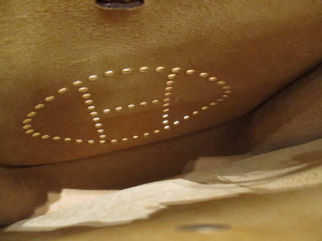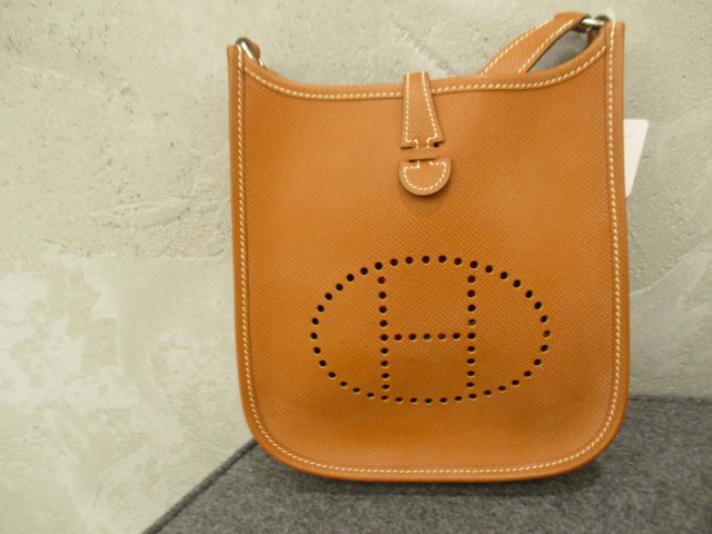 USED品。□I刻印(2005年製)。小ぶりなTPMは携帯やお財布が入るサイズ感です。「H」マークのパンチングがエルメスらしい、上品な印象の斜めがけショルダーバッグです。全体的に少々白く変色しております。その他はダメージも少なく美品です。