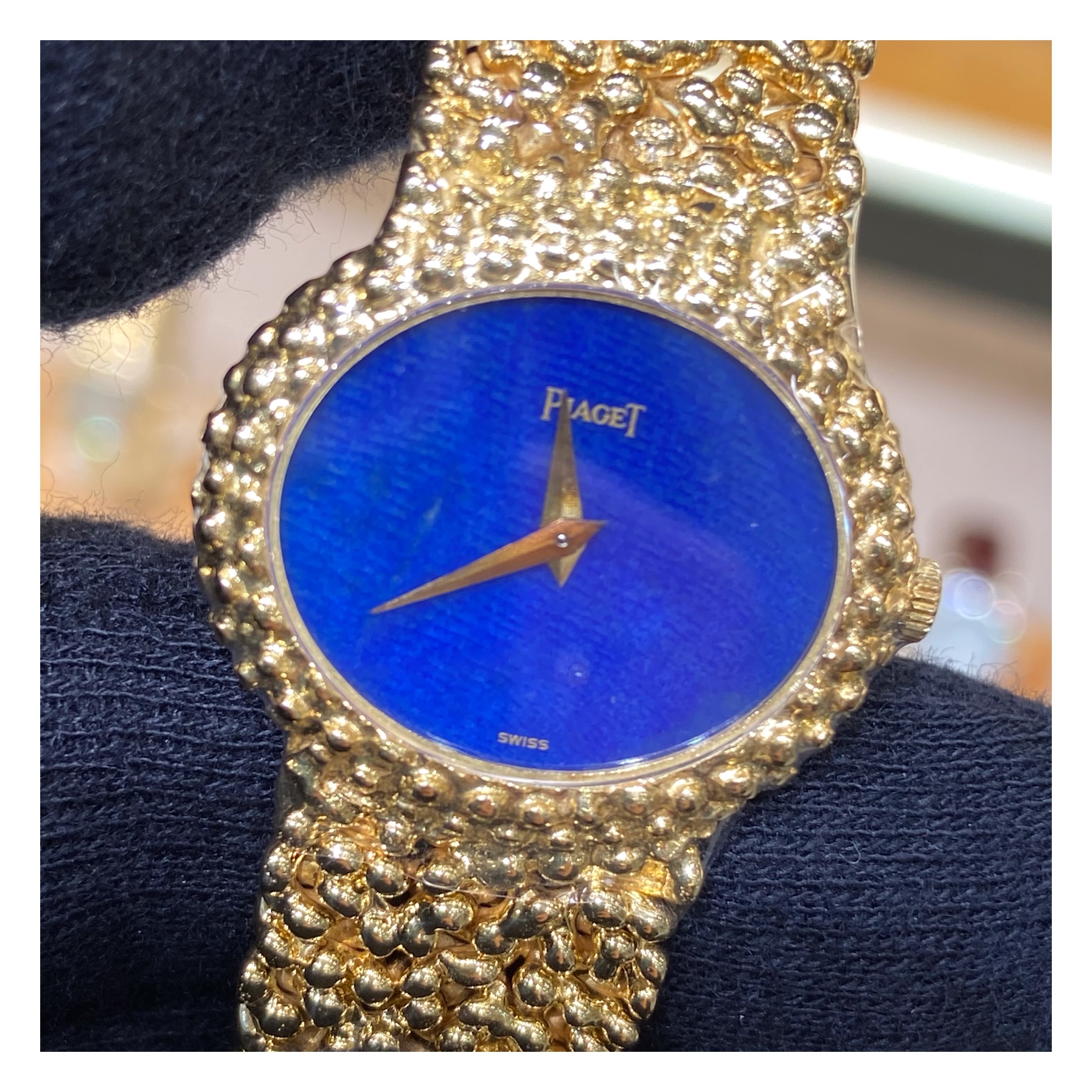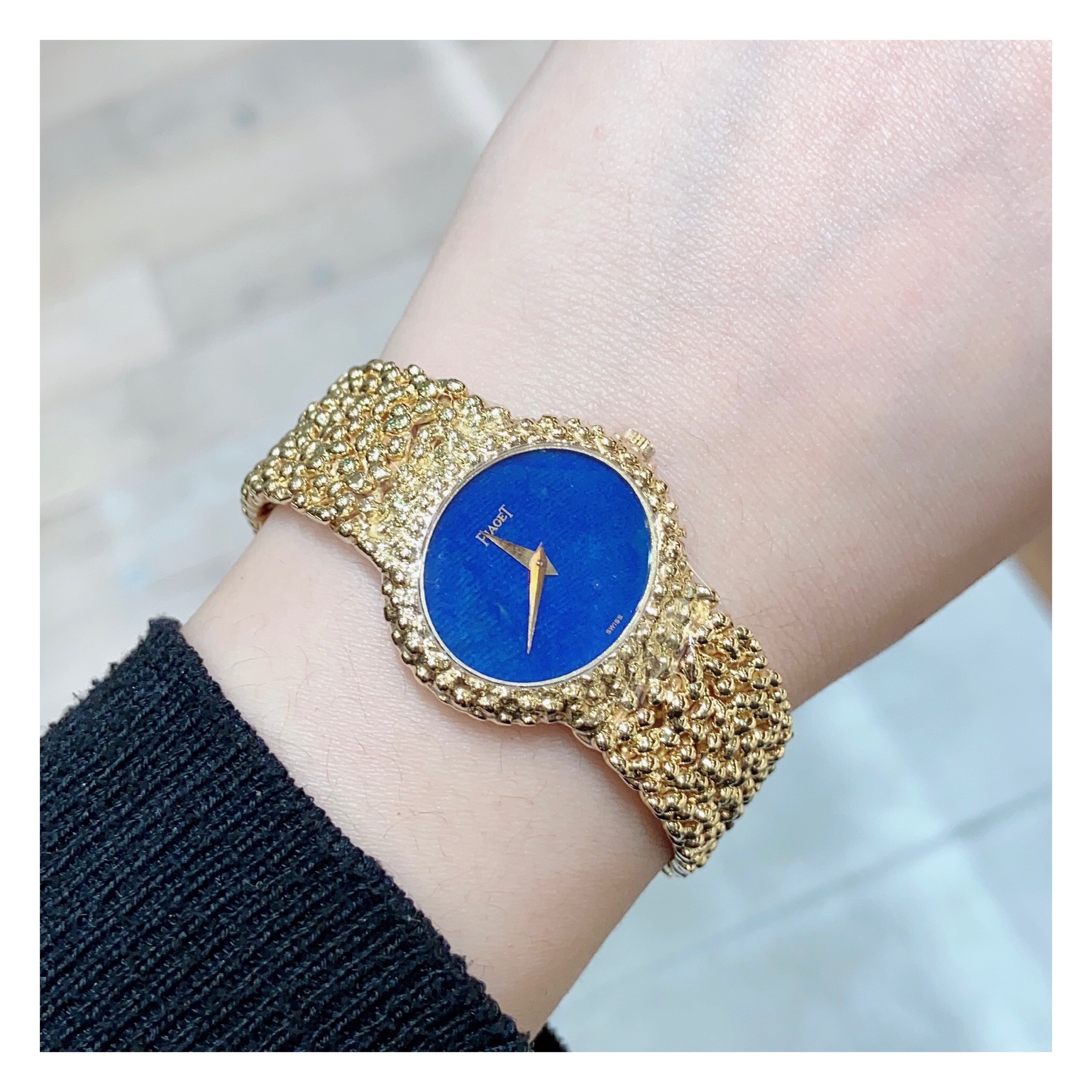 ピアジェのレディースウォッチです。ケース・ブレスにイエローゴールドを贅沢に使用し、文字盤にはラピスラズリを使用した豪華な一本です。