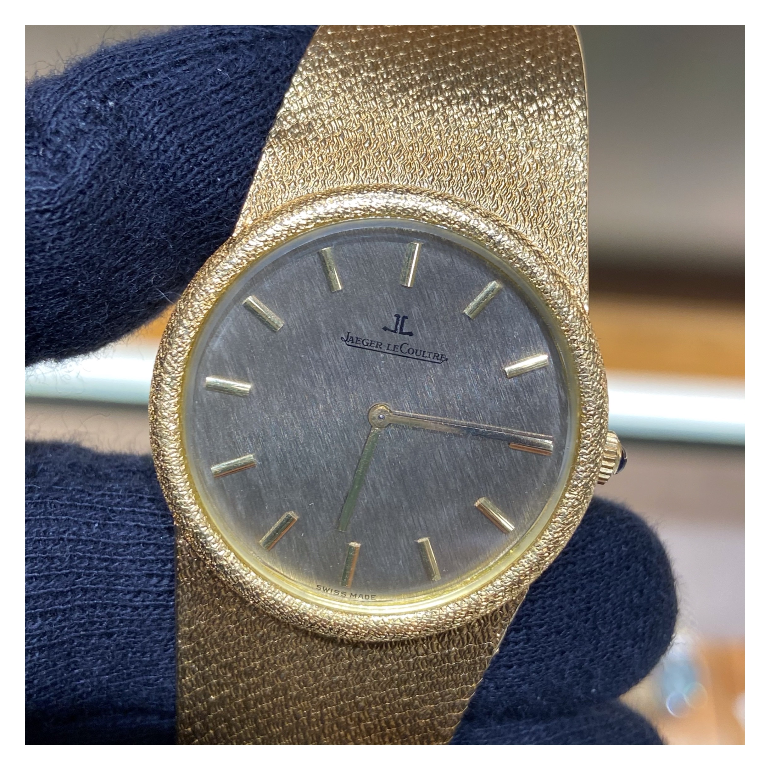 厳しいテストを繰り返す事により厳格な時計を生み出す「ジャガールクルト」。こちらは1970年代に製造されていた手巻式で、ケース径が32ミリとやや小さめですがメンズモデルの時計です。