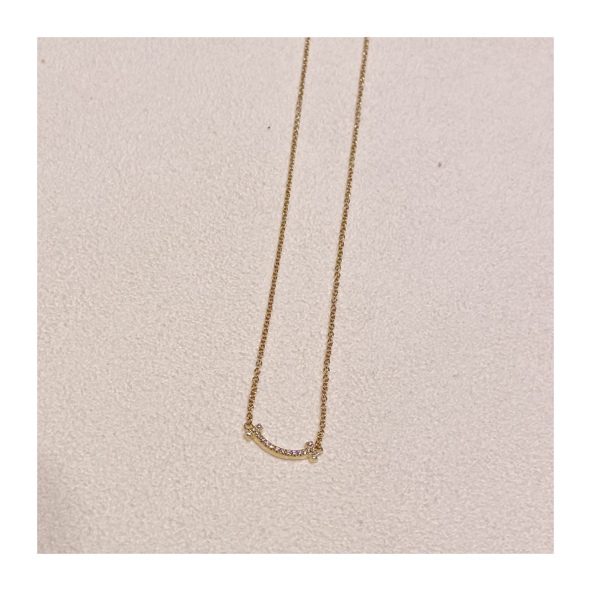 グラフィカルなアングルとクリーンなフォルムが美しく調和して生まれた、ティファニーTコレクション。ダイヤモンドに包み込まれた、気品あふれる美しい曲線が際立つペンダントです。