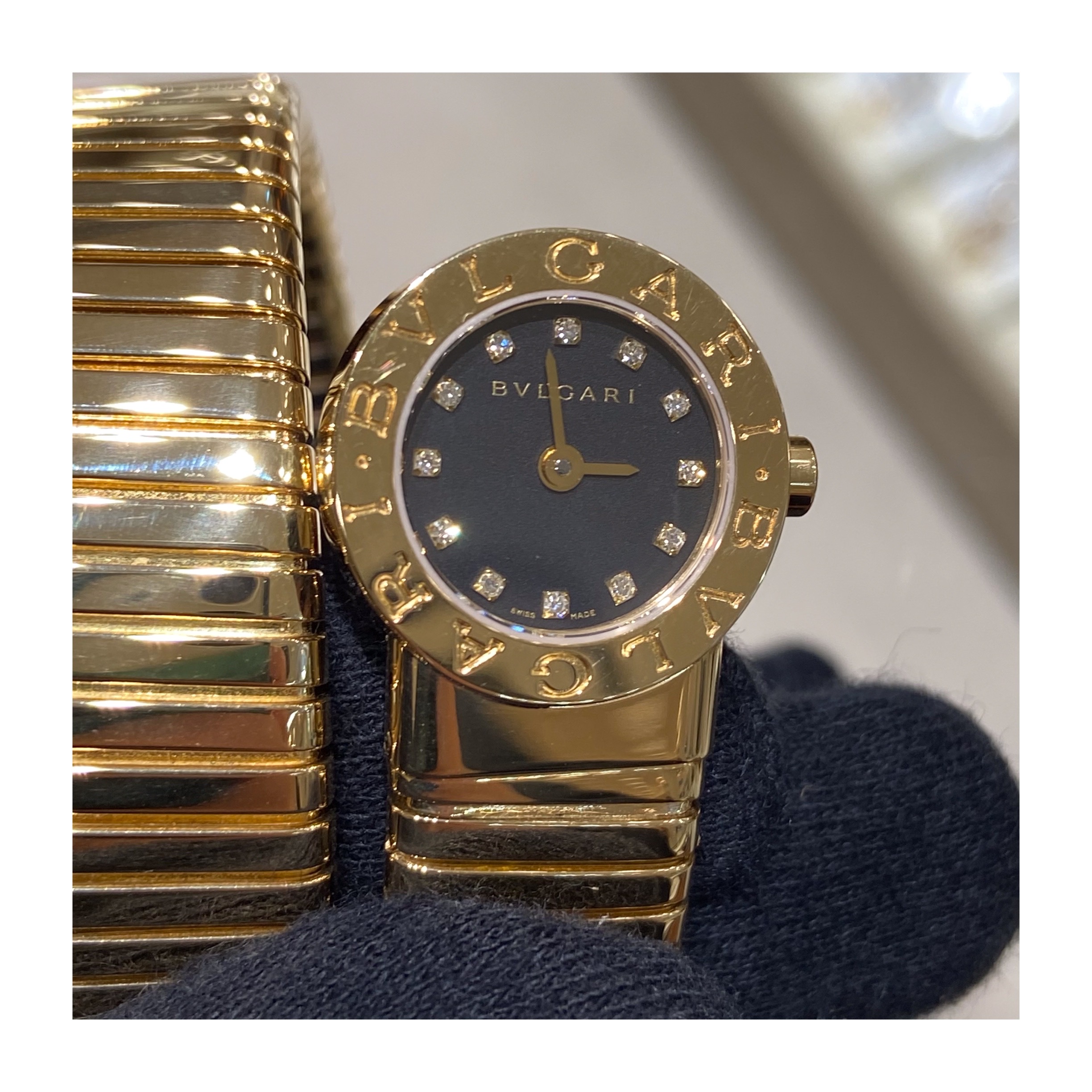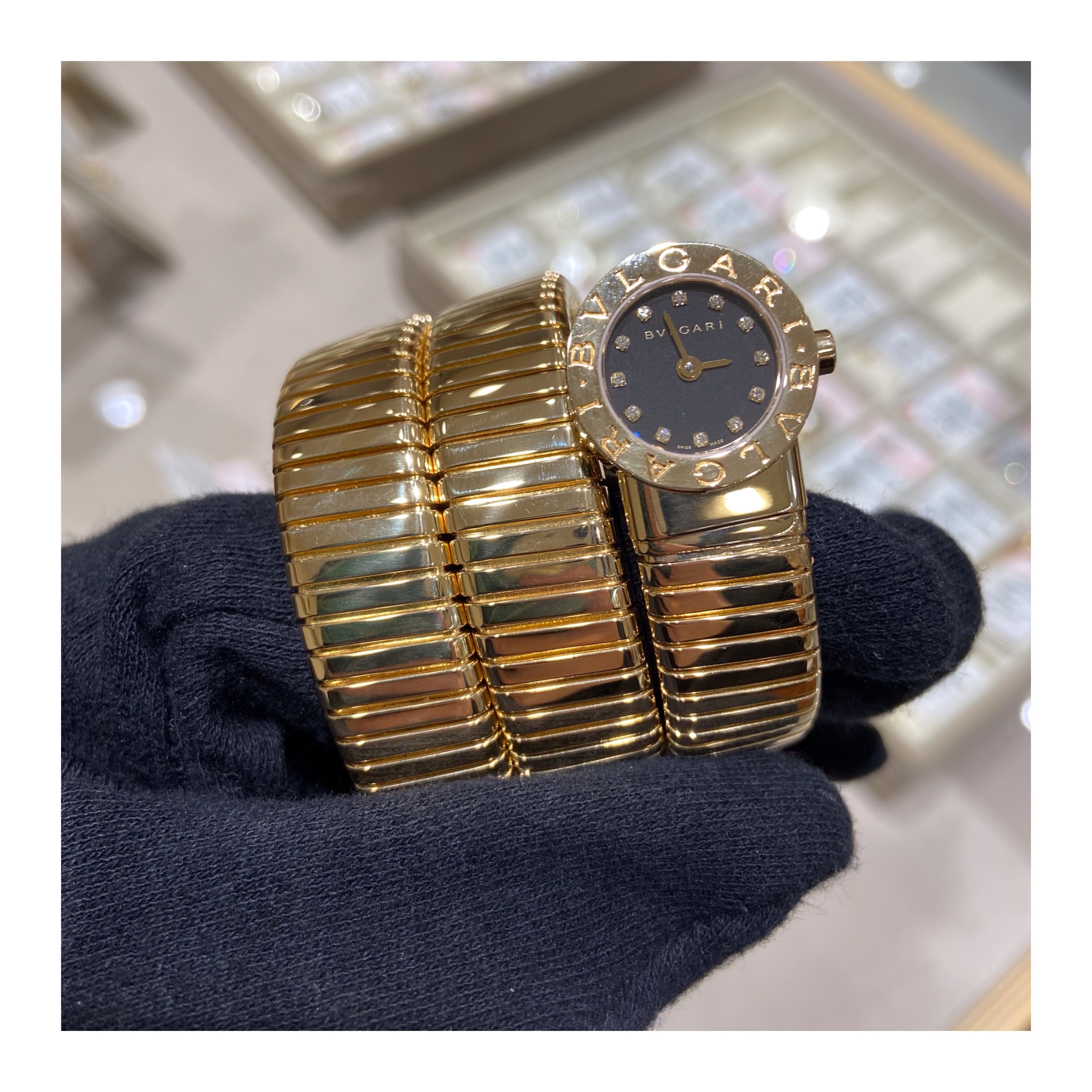 スネークのモチーフは、治癒のパワーを持つと言われギリシャ時代から愛されており、歴史的な彫刻にも多く残っています。ギリシャ出身のブルガリ家らしいモデルです。