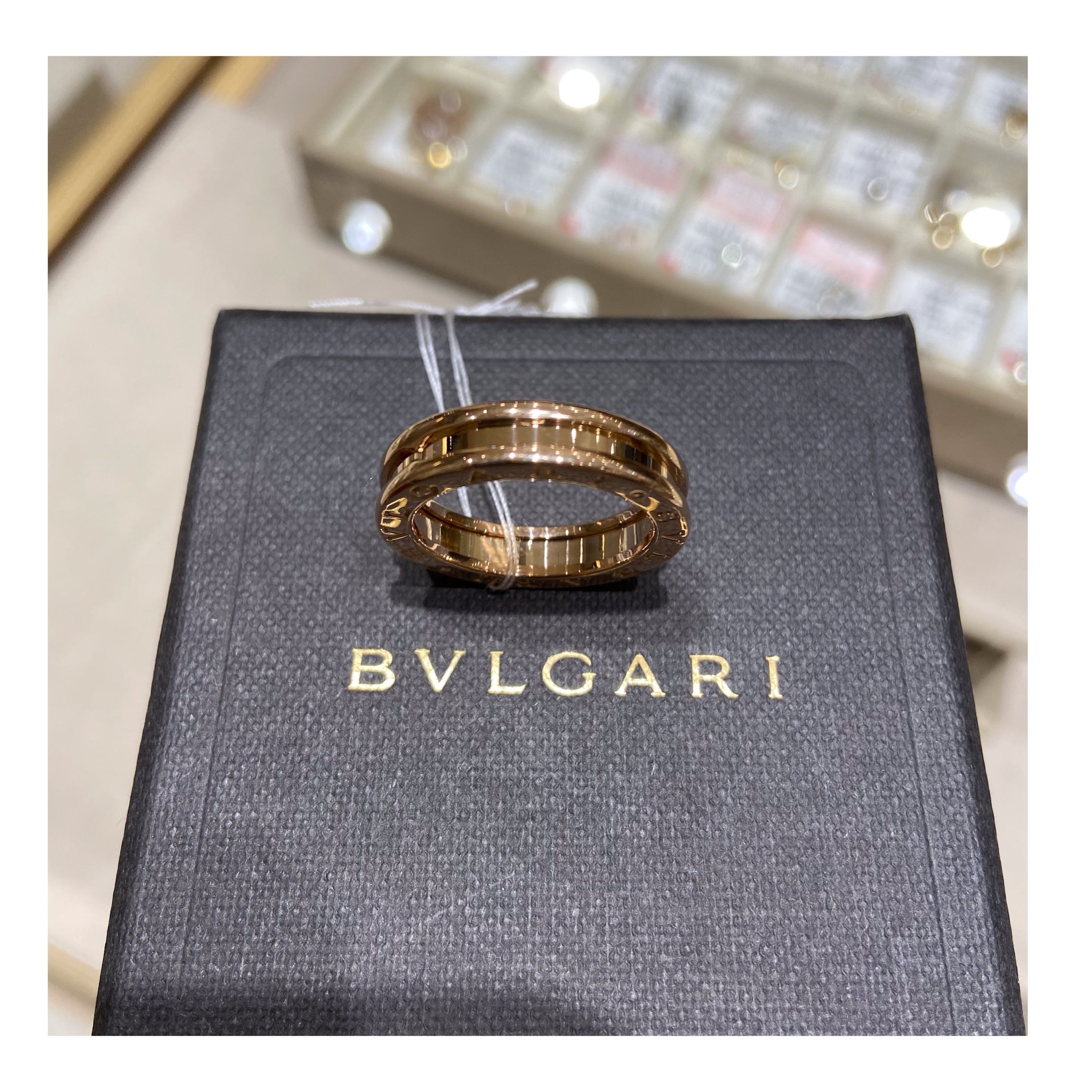 ブルガリの中でも高い人気を誇り、定番のアイテムとして愛されるビーゼロワンリングです。1バンドタイプのシンプルなスタイルを選ばない商品です。