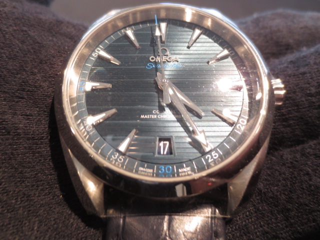 オメガの超人気ベストセラー・モデルである「アクアテラ」です!これは最新モデルです。非常に端正なフェイスでカジュアルにもスーツにもマッチしやすい万能型の時計です。機械はマスタークロノメーター認定で、すごく磁気に強く精度も高いものが入っています。大事に使って頂ければとてもとても長くご愛用できる時計です!お買い上げありがとうございました!!!!