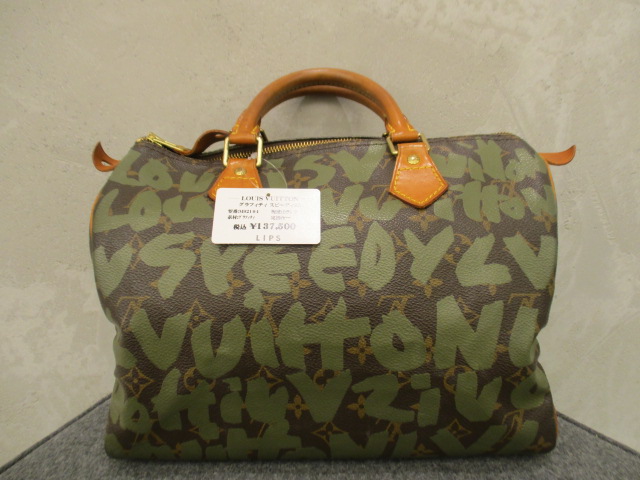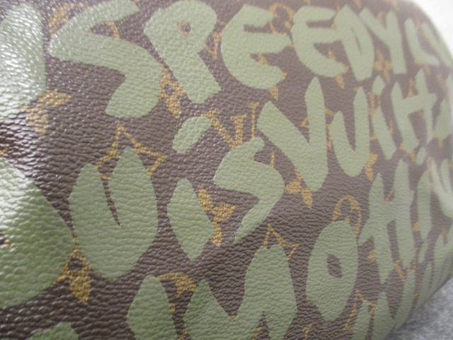 USED品。廃盤品。2000年に発売されたスティーブン・スプラウスとのコラボレートコレクションです。伝統の中にあるブランドのシンボルともいえるモノグラム・キャンバスに落書きをするという、普通の感覚では考えられない斬新なデザインでセンセーショナルを起こした遊び心のある魅力の逸品です。