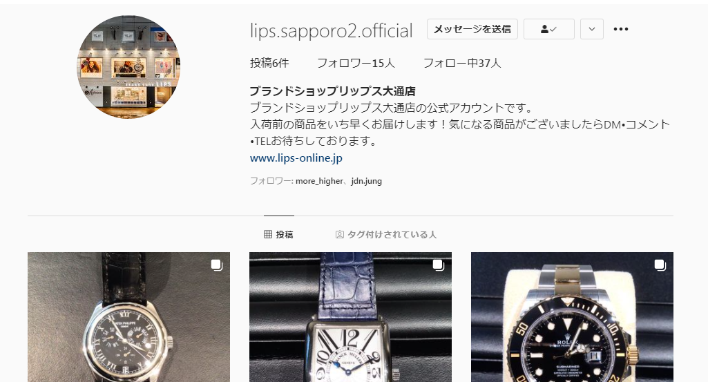 時計専門店のリップス大通店ですがこの度インスタグラムのアカウントを作成しました!