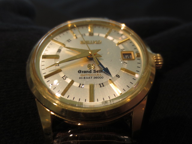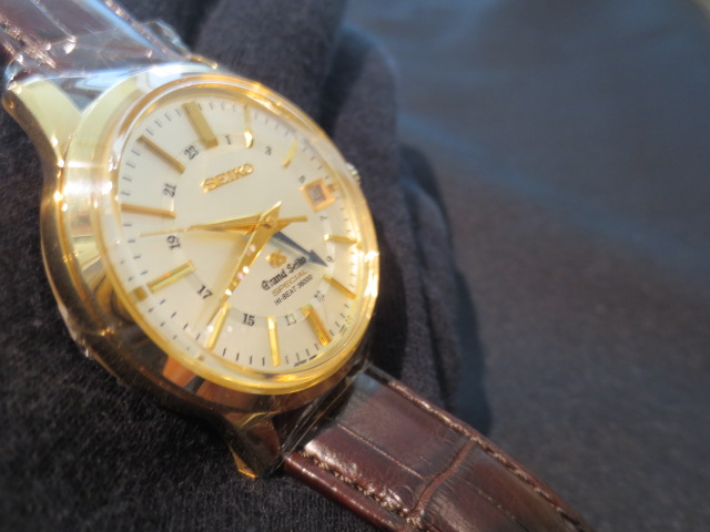 非常に珍しいグランドセイコーのK18YGモデルが入荷しました!手巻きモデルや3針モデルではたまにK18YGモデルは見かける事はありますが、GMTタイプは非常に珍しいです☆ブルースチールのGMT針がケースのYGと調和しとても気品があるデザインに仕上がっています。