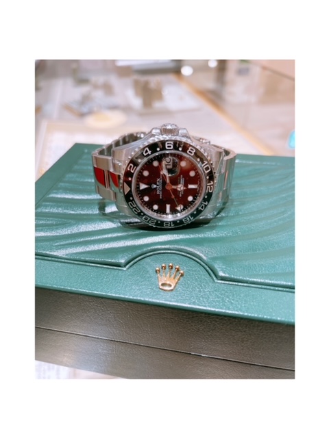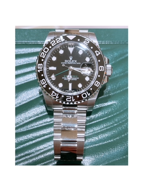 ロレックス人気モデル「GMTマスター2」。2019年に生産が終了となったセラミックの黒ベゼルは実用性はもちろん、これからの相場が楽しみな1本です。