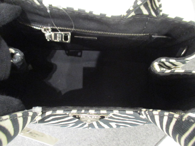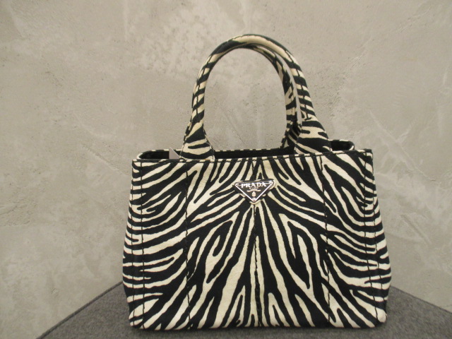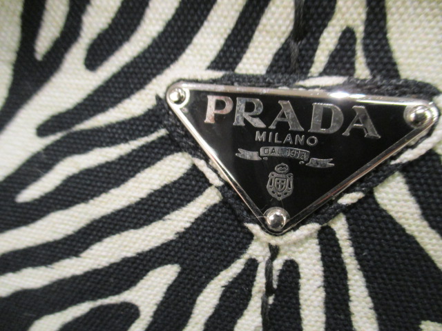 USED品。キャンバス素材で作られた軽快な雰囲気のハンドバッグ。とてもかわいいミニサイズ。プラダの象徴のロゴ紋章がプリントされ、カジュアル感がおしゃれなバッグです。