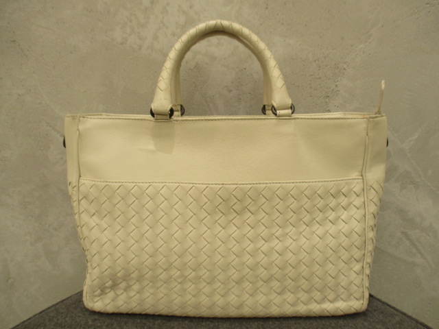 USED品。ボッテガヴェネタの代名詞とも言えるイントレチャートが施されたバッグです。アイボリーが大人っぽくお勧めです。日本限定品。