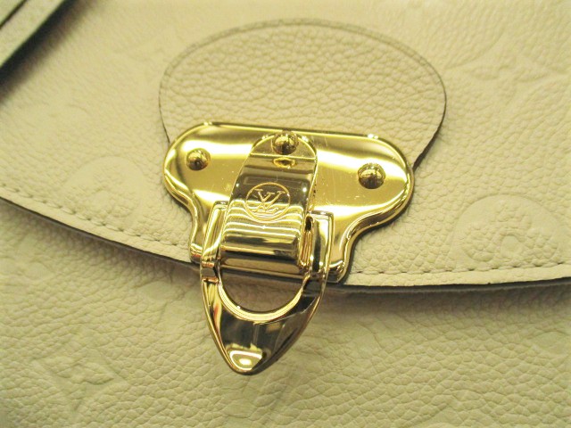 USED品。廃盤品。モノグラムパターンが型押しされたエレガントなアンプラントレザー素材の『ジョルジュBB』2WAYバッグです。コンパクトでスタイリッシュなバッグですが、ショルダー付きで機能性抜群の逸品です。角に若干の黒ずみがあります。