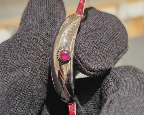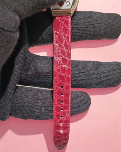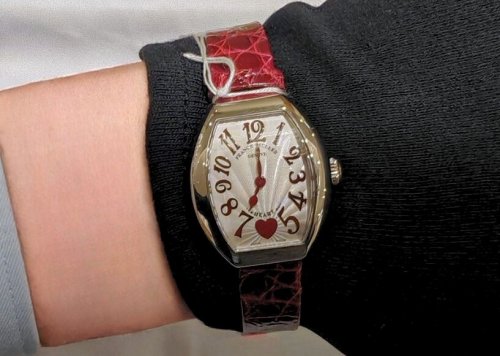 ハートを取り入れた表情豊かなレディースモデル 2025.11.13 本日紹介するのは、『フランクミュラー ハートトゥハート ウォッチ 5002SQZC6H』。実機写真とともに、魅力を掘り下げていきます。 型番:5002SQZC6H、素材:ステンレススチール、ベルト素材:クロコダイルレザー、ムーブメント:クォーツ、重量:約26.9g、ケース径:26x31mm、文字盤:ホワイト。 “愛”をテーマに愛おしい気持ちを象った「ハート トゥ ハート」「ハート トゥ ハート」は、2007年に誕生したフランク ミュラーのコレクションです。アール・デコ様式からインスピレーションを受け、ブランドを象徴する「トノウ カーベックス」のフォルムを受け継いだ新しいケースデザインとして生まれました。数あるレディースモデルの中でも、ハートをデザインに取り入れた表情豊かな文字盤のデザインが魅力的です。 ケース裏面。赤く見える線は裏蓋に貼られているシールです。※シリアル番号は情報保護のため公開しておりません。 付属品:箱 保証書(保証書日付:2018年07月)フランクミュラー国内正規代理店では現在、並行輸入品の修理を受付されないことがあります。 リューズ側のケース側面。 直線がなく、なめらかな曲線で構成された女性らしいフォルム。そのたおやかな形は腕元に優しくフィットします。重量はケース・ベルト・バックルを含めて約26.9gと軽量。 深みのあるピンク色のベルトはクロコダイルが使用されており、高級感があります。バンドの状態は未使用に近いので、交換せずにそのまま使用できます。 ループ・バックル。 最後はリストショット!精緻なギヨシェ模様が美しいホワイトダイアルに、ビビットなピンク色の針。6時位置にあるハートがかわいらしくも、表情豊か。プレゼントにも人気の商品です。LIPSの商品をオンラインで買うなら、LIPSオンラインショップが最安値です。店舗が近くにない!という方はぜひご利用ください。店頭・Webで販売中ですので、売り切れの場合はご容赦ください。 Share Facebookでシェアする Xでシェアする Pinterestでシェアする GMTマスター2 通称”ルートビア”入荷しました15 / 18022025年新作ターコイズブルー