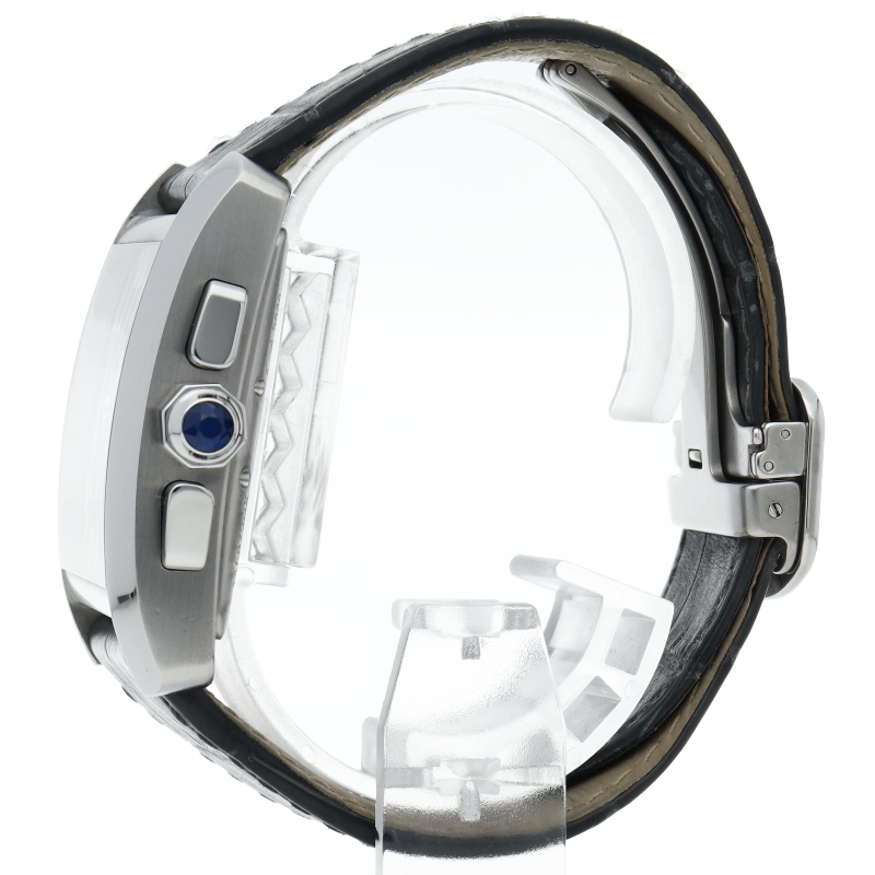 グレー文字盤で上質なカジュアルさを楽しむ 2025.10.27 こんにちは!本日はLIPS通販事業部より、おすすめの一本『CARTIER タンクMC クロノグラフ ウォッチ』をご紹介させていただきます! CARTIERタンクMC クロノグラフ ウォッチ商品番号:2000082233500730型番:W5330008付属品:なしMCとは「マニュファクチュール・カルティエ」のこと。つまり、時計デザインと組み立てだけでなく、ムーブメントも自社製なのです。自社製ムーブメント「1904-CH MC」は主ぜんまいを2つ搭載する「ツインバレル式」で、パワーリザーブや精度も従来のタンクより大きく向上させました。その一方、従来サイズの厚さ4mmで設計され、腕時計自体の厚みを12mmにおさえています。程よくカーブしたケースも腕にフィットし、高いデザイン性にもカルティエの美学が感じられます。44×34.4mmとケースサイズは大きいですが、グレーアリゲーターの革ベルトと、奥行きのあるギョーシェ文字盤が落ち着いた上品さを演出し、スマートに着けられます。横目に並んだサブダイヤルと、6時位置の日付表示のバランスが素晴らしく、見る度に安心感のある整ったデザインです。 店頭・Webで販売中ですので、売り切れの場合はご容赦ください。 Share Facebookでシェアする Xでシェアする Pinterestでシェアする 遊び心魅せるブライトリングの『ゾロ・ダイヤル』18 / 1802男心くすぐるオールブラックの時計!