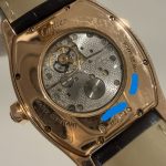 ブルースチール加工が施された緩急針や、受け板に刻まれたカルティエの「ダブルC」モチーフなど、細部にまで徹底したこだわりが感じられますね。