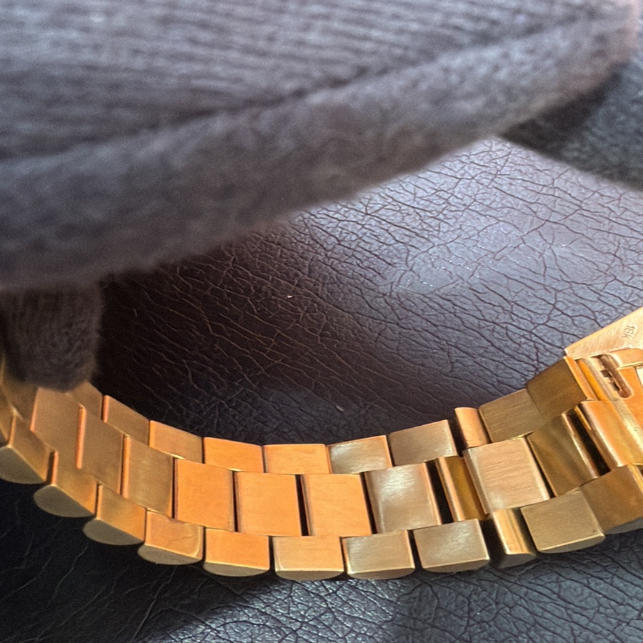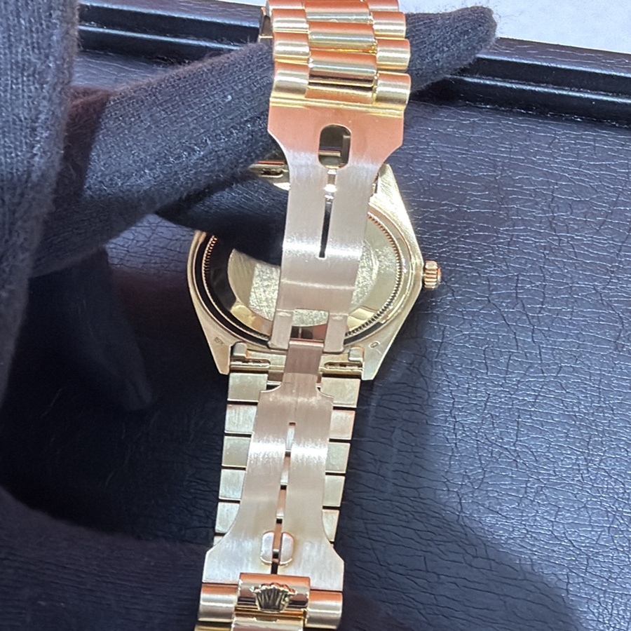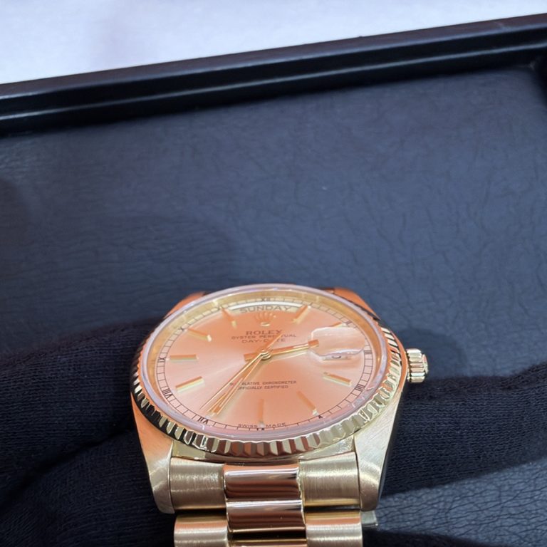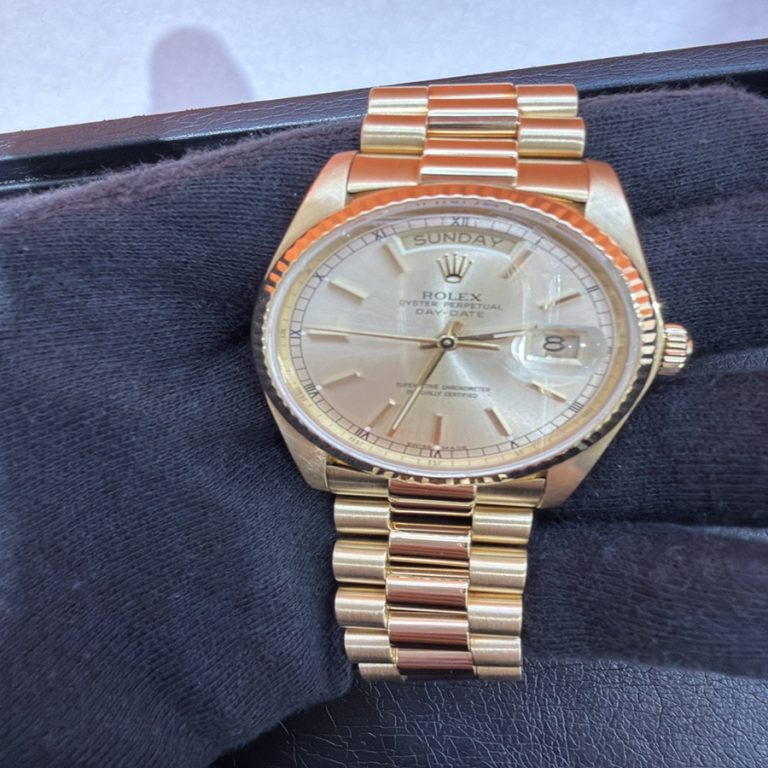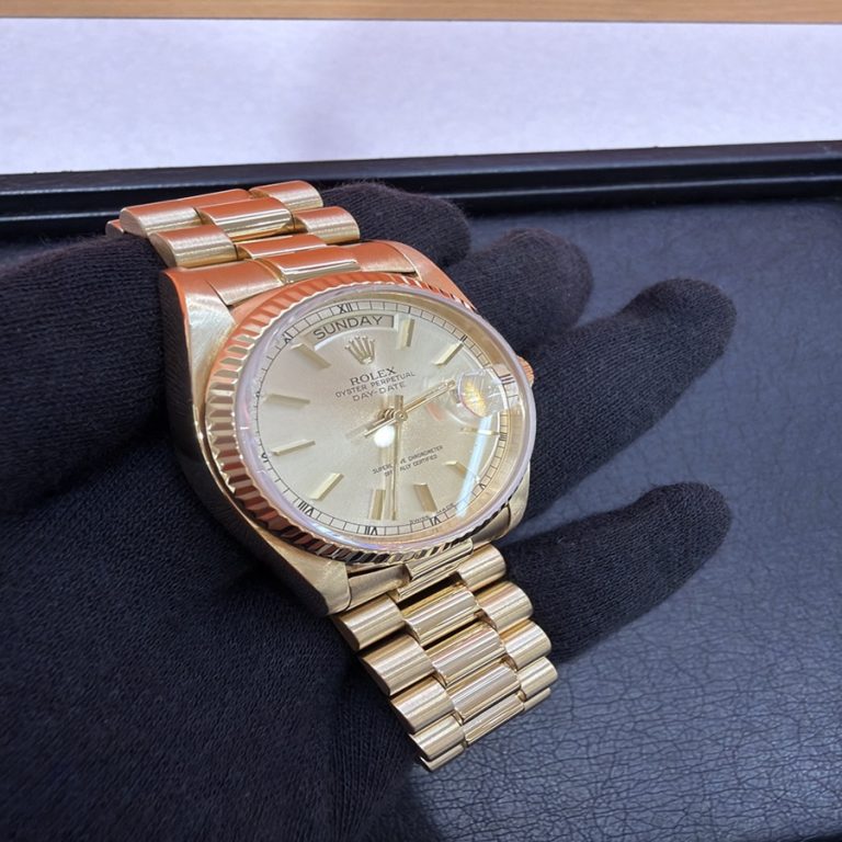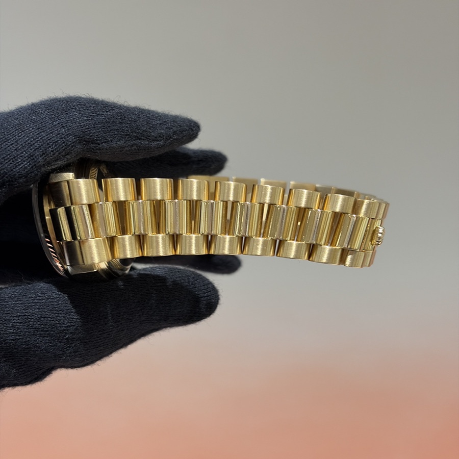 現行の40mmや41mmも迫力がありますが、36mmというクラシックなサイズ感は、日本人の腕に最も馴染みます。「金無垢は派手すぎる」と思われがちですが、シャツの袖口からチラリと覗く18038には、不思議と嫌味のない「風格」が漂います。資産価値としても安定しており、一生モノとして手にするには最高の選択肢ではないでしょうか。