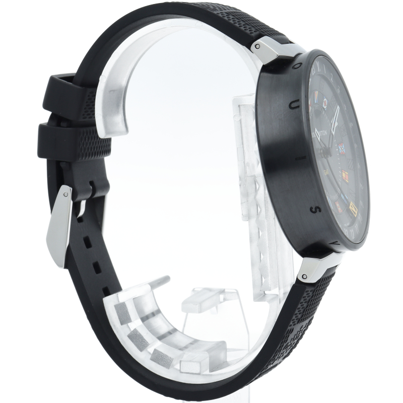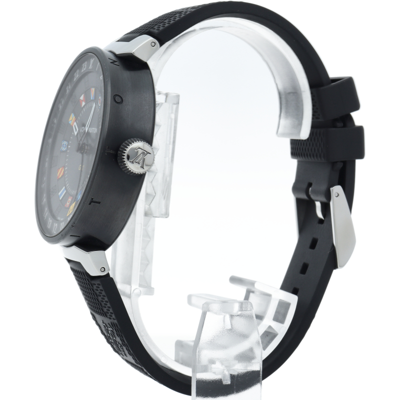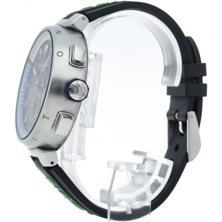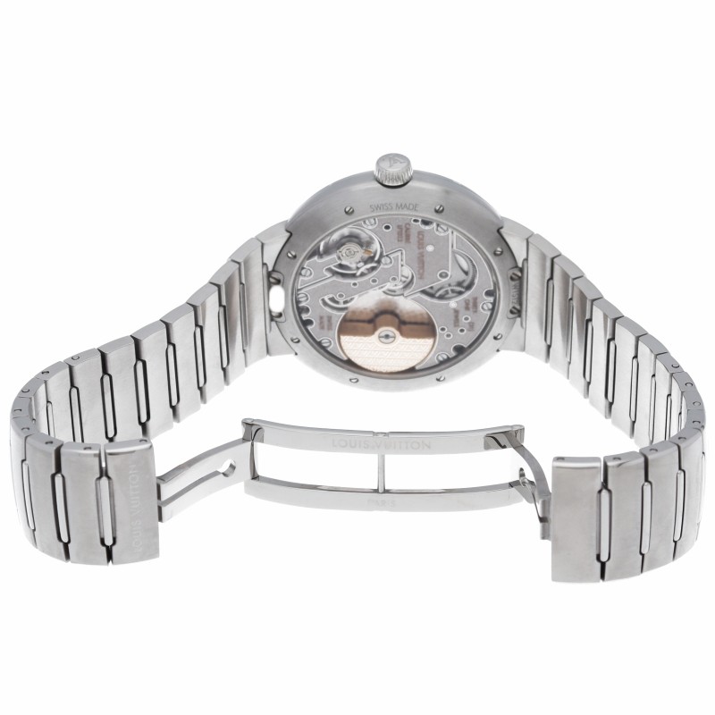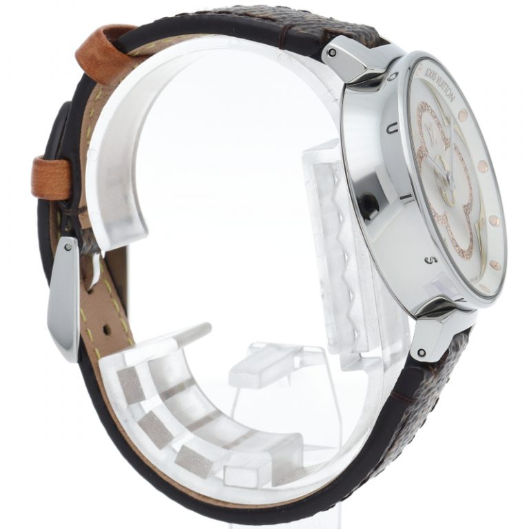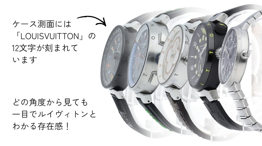 側面から見ると、切り立ったケースには「L-O-U-I-S-V-U-I-T-T-O-N」の12文字が刻まれており、どの角度から見ても一目でそれと分かる存在感を放ちます。伝統的なウォッチメイキングに、メゾン特有の遊び心とラグジュアリーが融合したシリーズです。