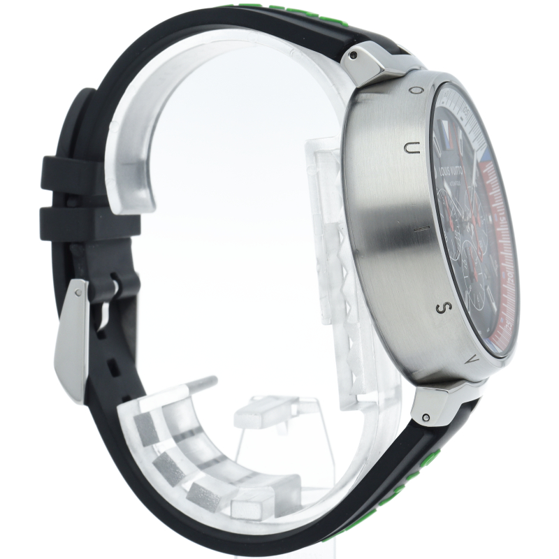 2002年の登場以来、ルイ・ヴィトンの時計作りの象徴として君臨し続けている「タンブール」。フランス語で「太鼓」を意味するその名の通り、厚みのあるケースラインが最大の特徴です。