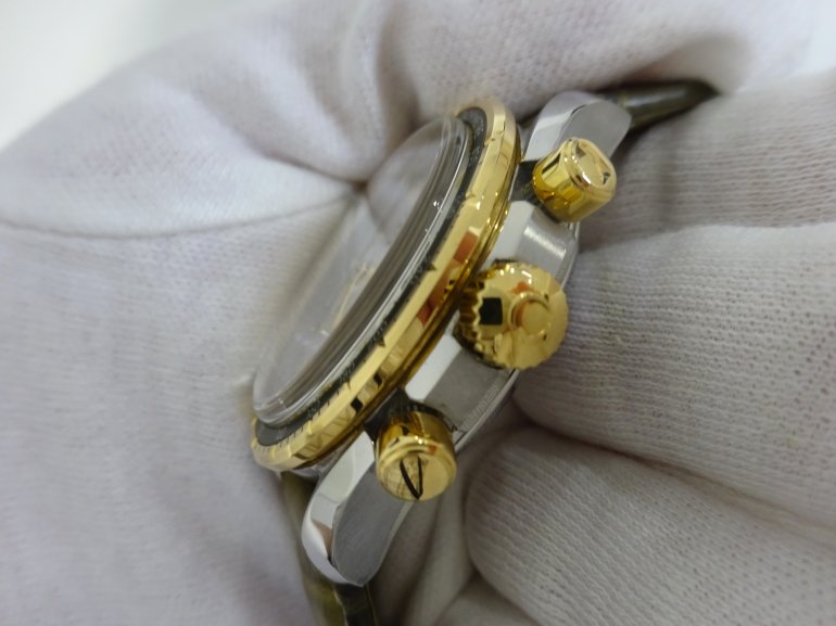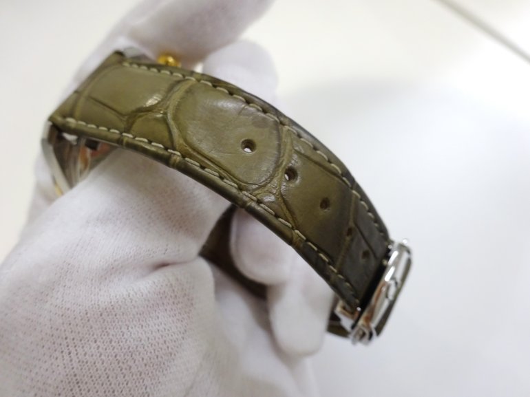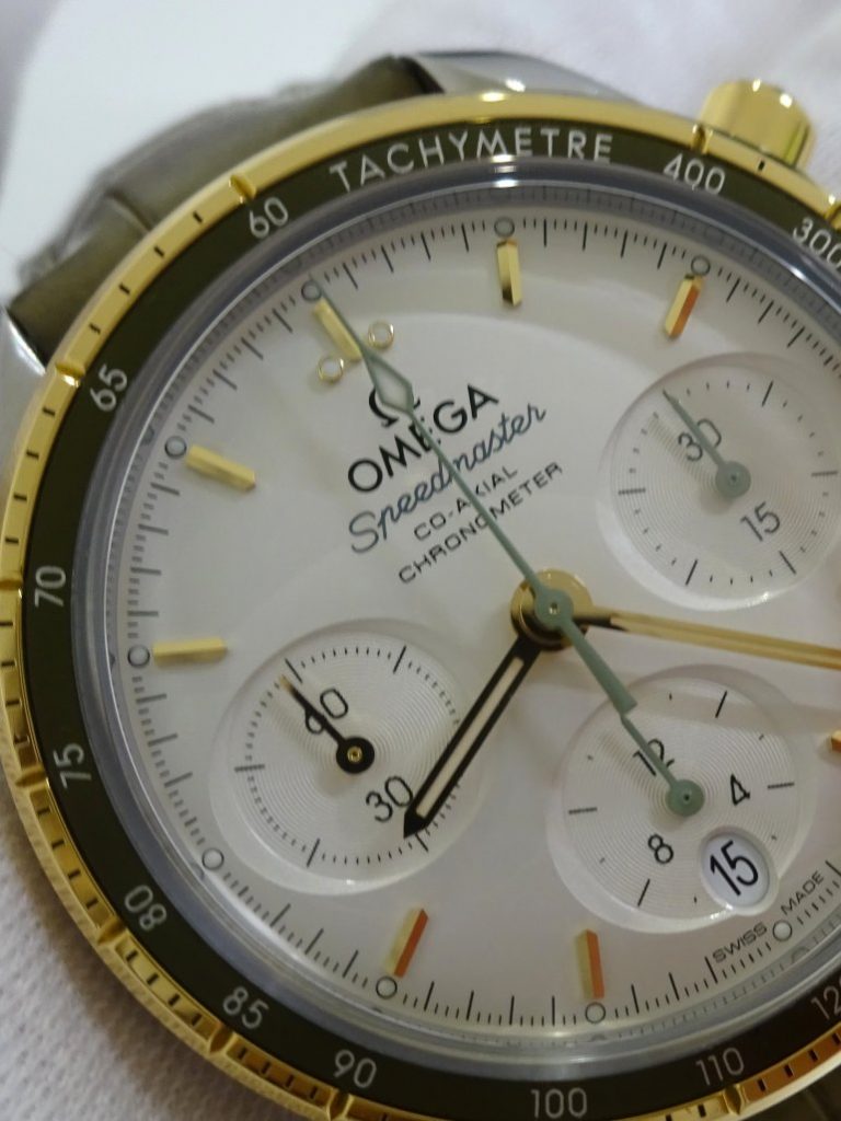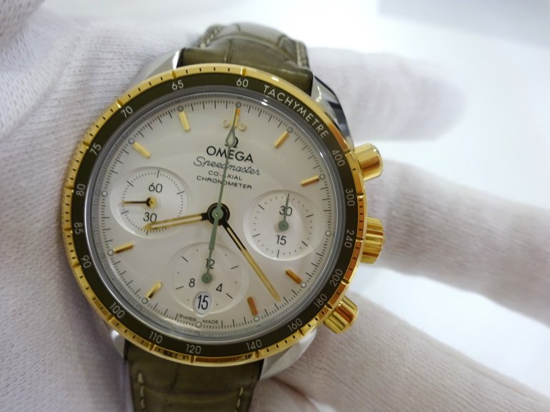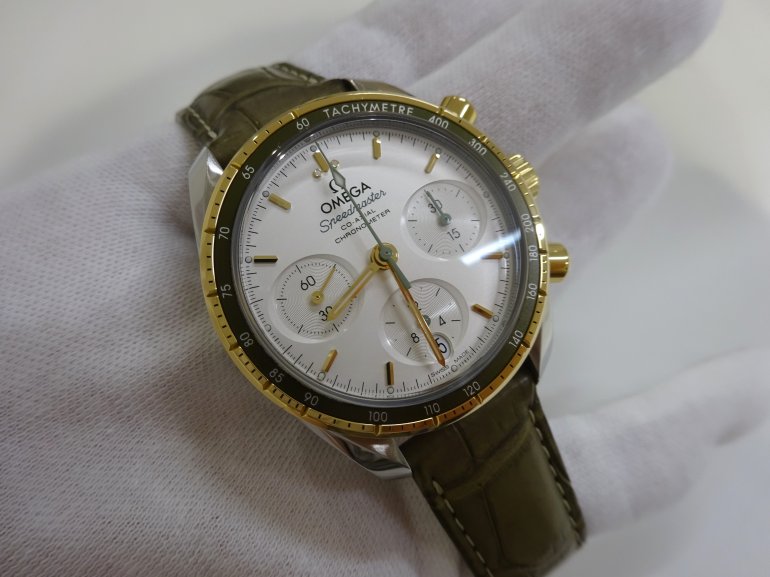 OMEGA シーマスター300M クロノグラフのご紹介 2025.08.15 こんにちは!LIPS通販事業部よりおススメの腕時計をご紹介します。本日はこちら『オメガ スピードマスター コーアクシャル クロノメーター クロノグラフ 38mm』です! オメガスピードマスター コーアクシャルクロノメーター クロノグラフ 38mm商品番号:2000052233501696型番:324.23.38.50.02.001付属品:箱 保証書保証書日付:2022年10月海外購入品です!売り切れました!ご購入ありがとうございます。 実物はオメガ公式サイトの商品写真で見るよりも、落ち着いたオリーブ色のような革ベルトです。 両面に無反射処理が施されたサファイアガラスが使用されており、頑丈さと見やすさを兼ね備えています。横楕円型のサブダイアルがおしゃれですね。シルバー文字盤で高級感がありながらも、視認性もGOOD。ポリッシュ仕上げおよびサテン仕上げのゴールド製ベゼルに、タキメータースケールを表示したグリーンのアルミニウム製リングのコントラストが美しい時計ですね。 リューズ側。 目立った傷もなくきれいな状態です。 アリゲーター素材を使った革ベルトの状態は未使用に近く良好です。落ち着いたオリーブ色のベルトがイエローゴールドのベゼルを引き立てます! 濃いオリーブ色の部分と、少し明るいオリーブ色のグラデーションになっている部分があります。 肌に当たる部分(裏面)もきれいな状態です。ベルト裏面はノングレインカーフレザーを使用しているので、着け心地も良いです。 もちろん裏面にはOMEGAの刻印があります! ケースバックにはシーホースのエンブレムを刻印されています。 スピードマスターのスポーティなクロノグラフの雰囲気を残しながらも、上品さを感じられる仕上がりですね。 付属品は、外箱・内箱・オメガ説明書・保証カード・カードスリーブが揃っています。内箱やカードスリーブはベタつきもなく、良い状態です。 こちらの商品は売り切れました。ご購入ありがとうございます! ▼International Listings Available Chrono24 ebay Share Facebookでシェアする Xでシェアする Pinterestでシェアする OMEGA シーマスター300M クロノグラフのご紹介28 / 1802介绍【卡地亚的桑托斯·加尔比SM20周年限量版】